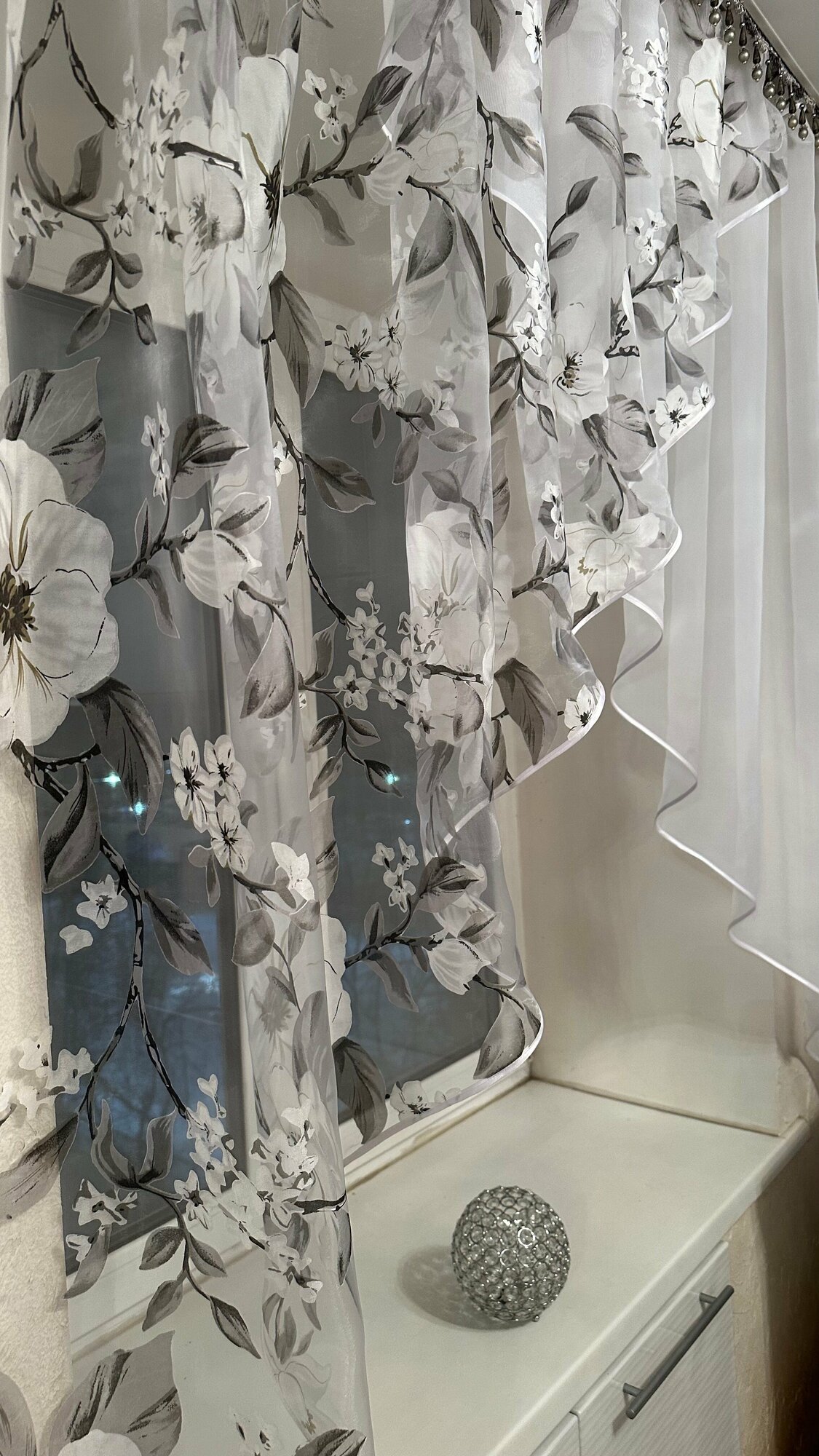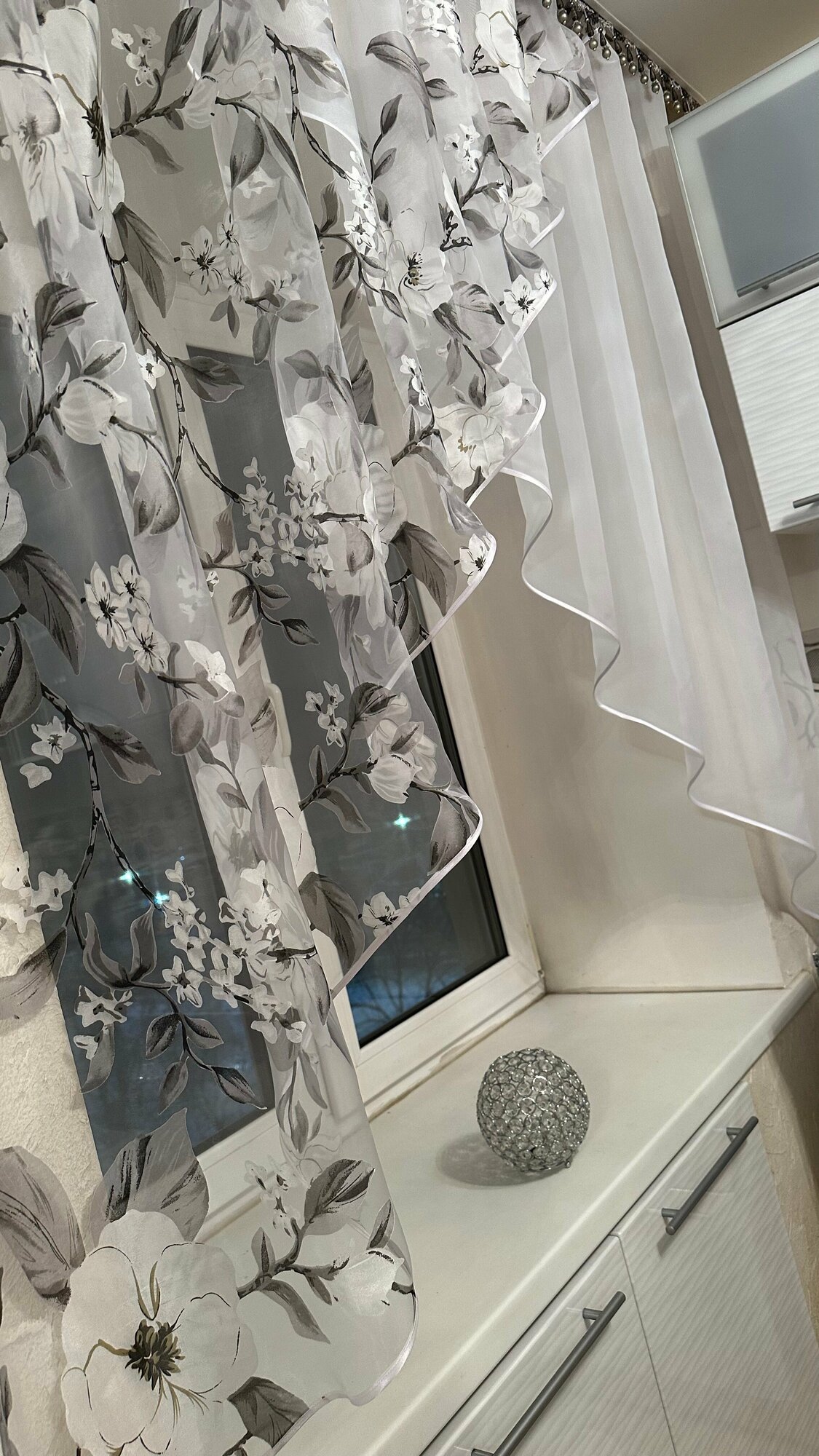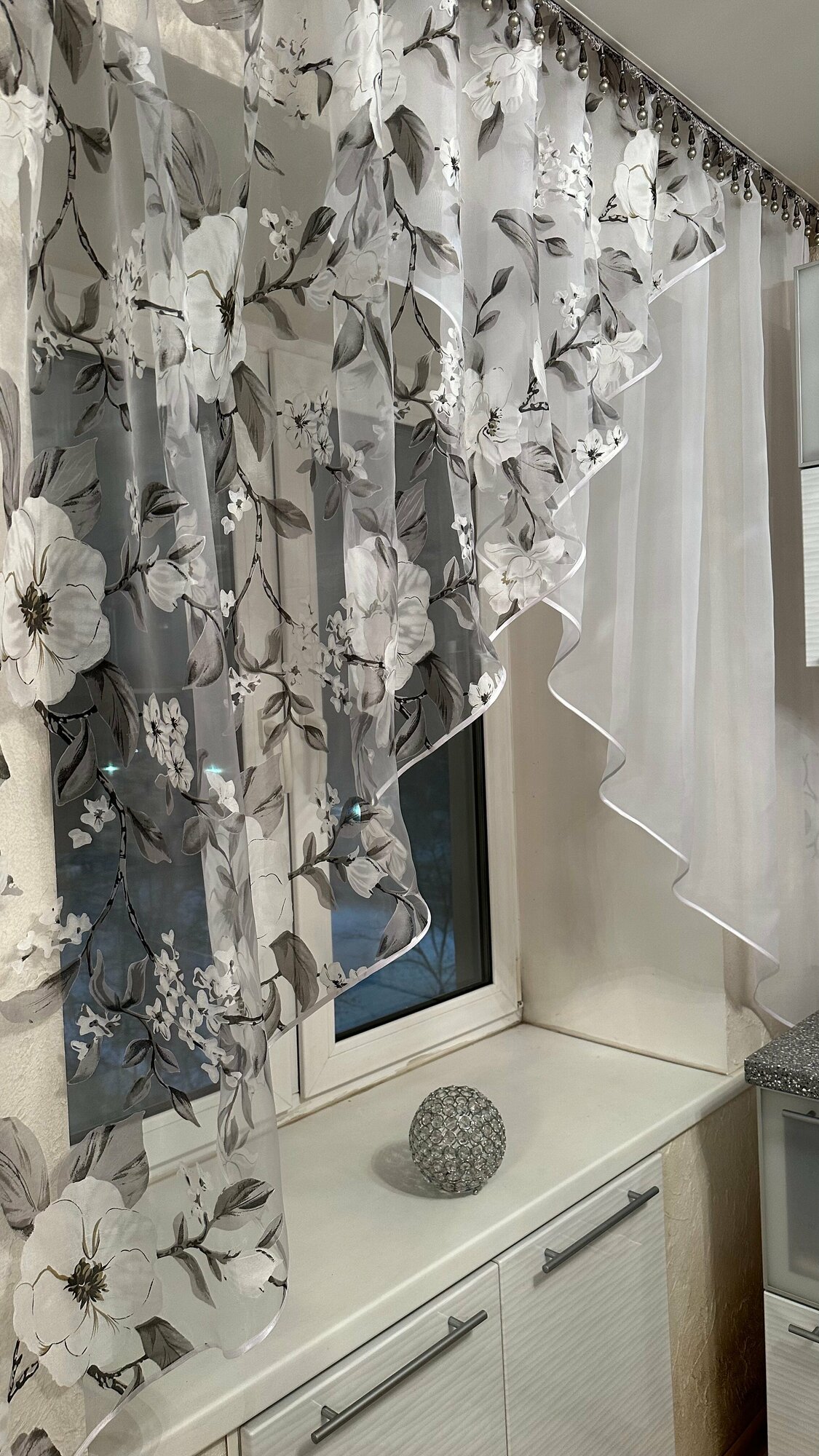 10 цен на Кухонная шторка серые цветы, ширина 3м, высота 1,7м