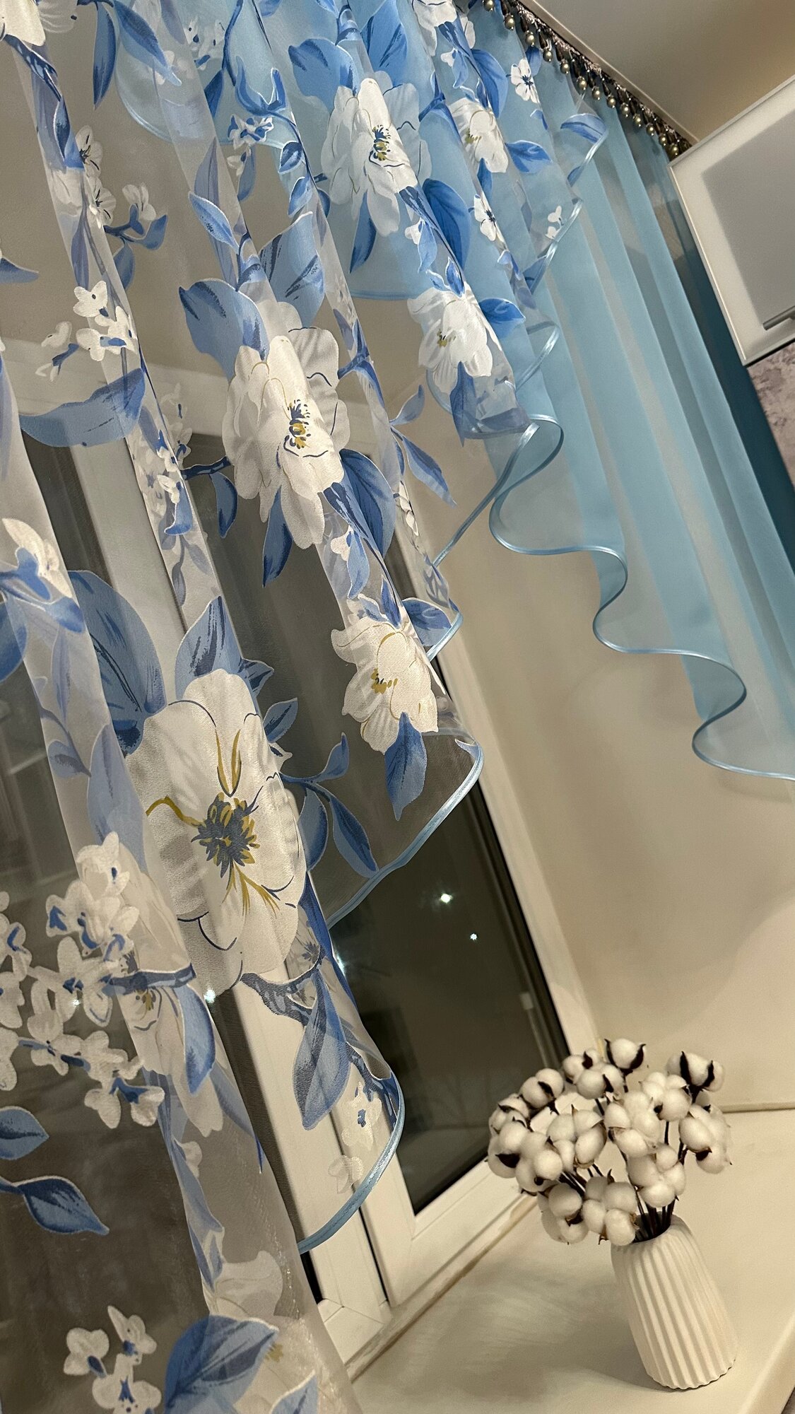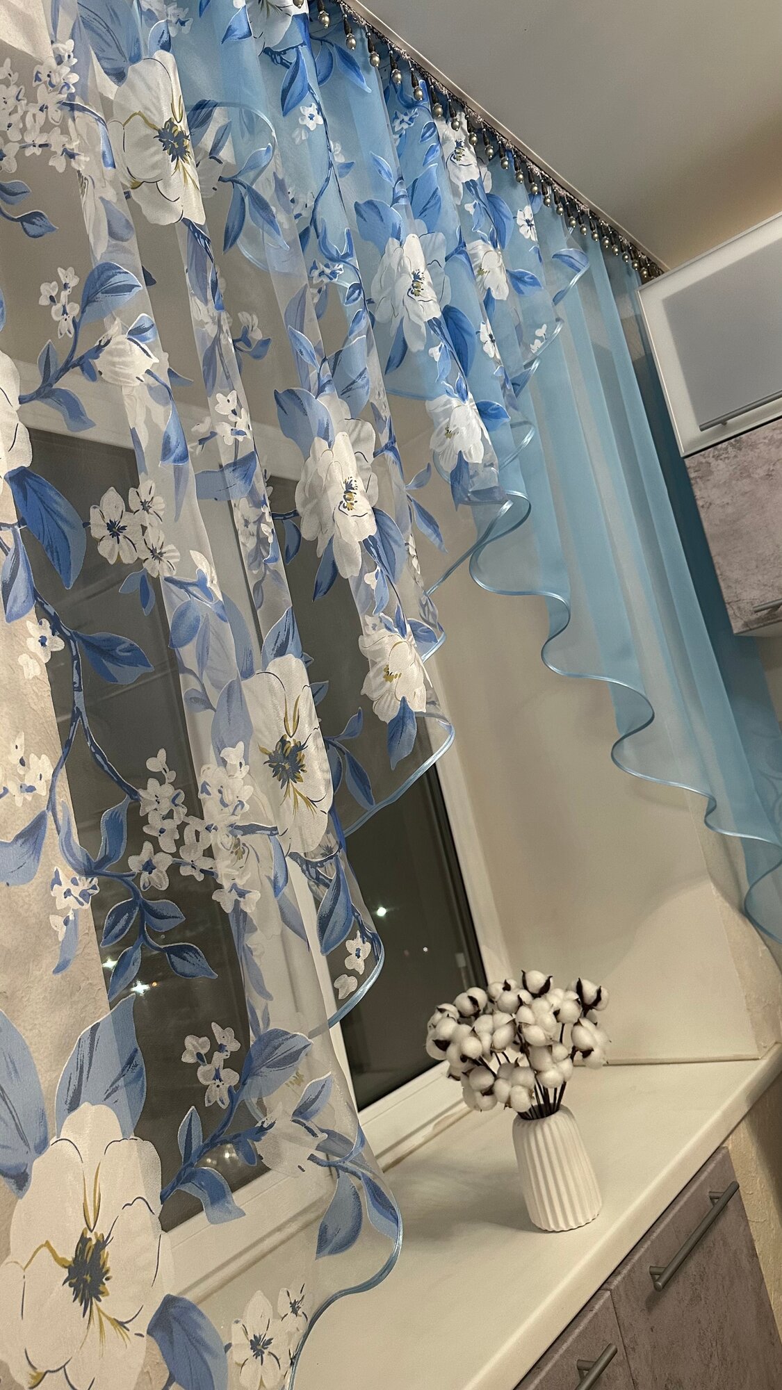 10 цен на Кухонная шторка голубые цветы, ширина 3м, высота 1,7м
