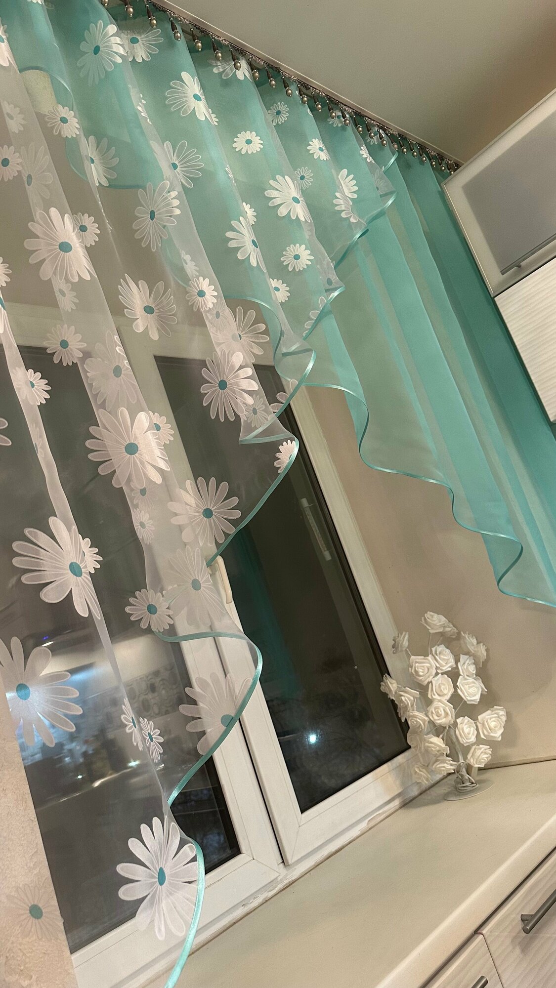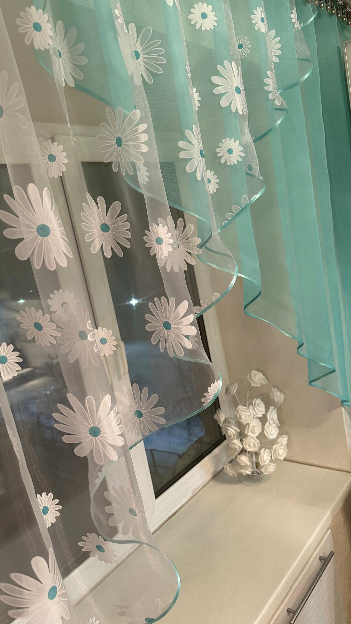 Кухонная шторка ромашка бирюзовая, ширина 3м, высота 1,7м информация: