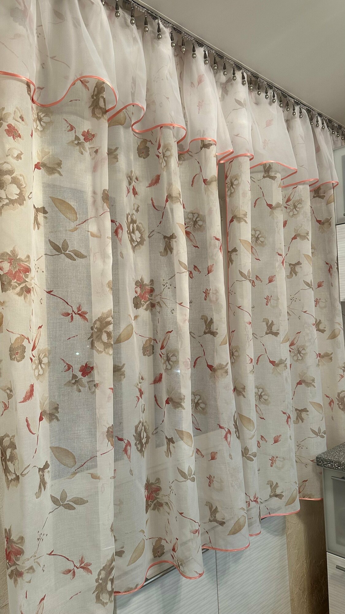 Кухонная шторка коралловые цветы, ширина 3м, высота 1,7м 2 390 ₽
