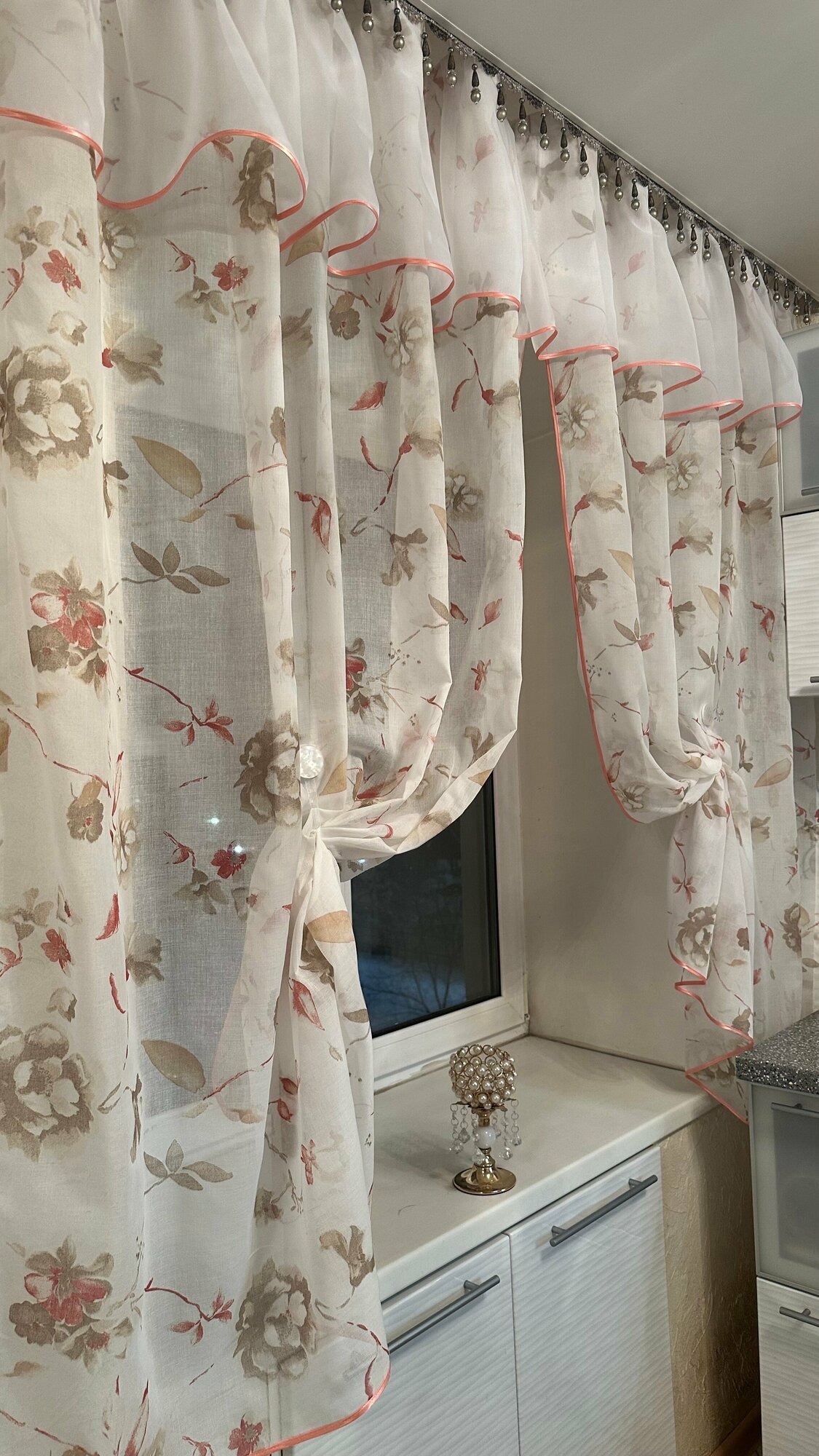 Кухонная шторка сакура бежевая, ширина 3м, высота 1,7м 2 890 ₽