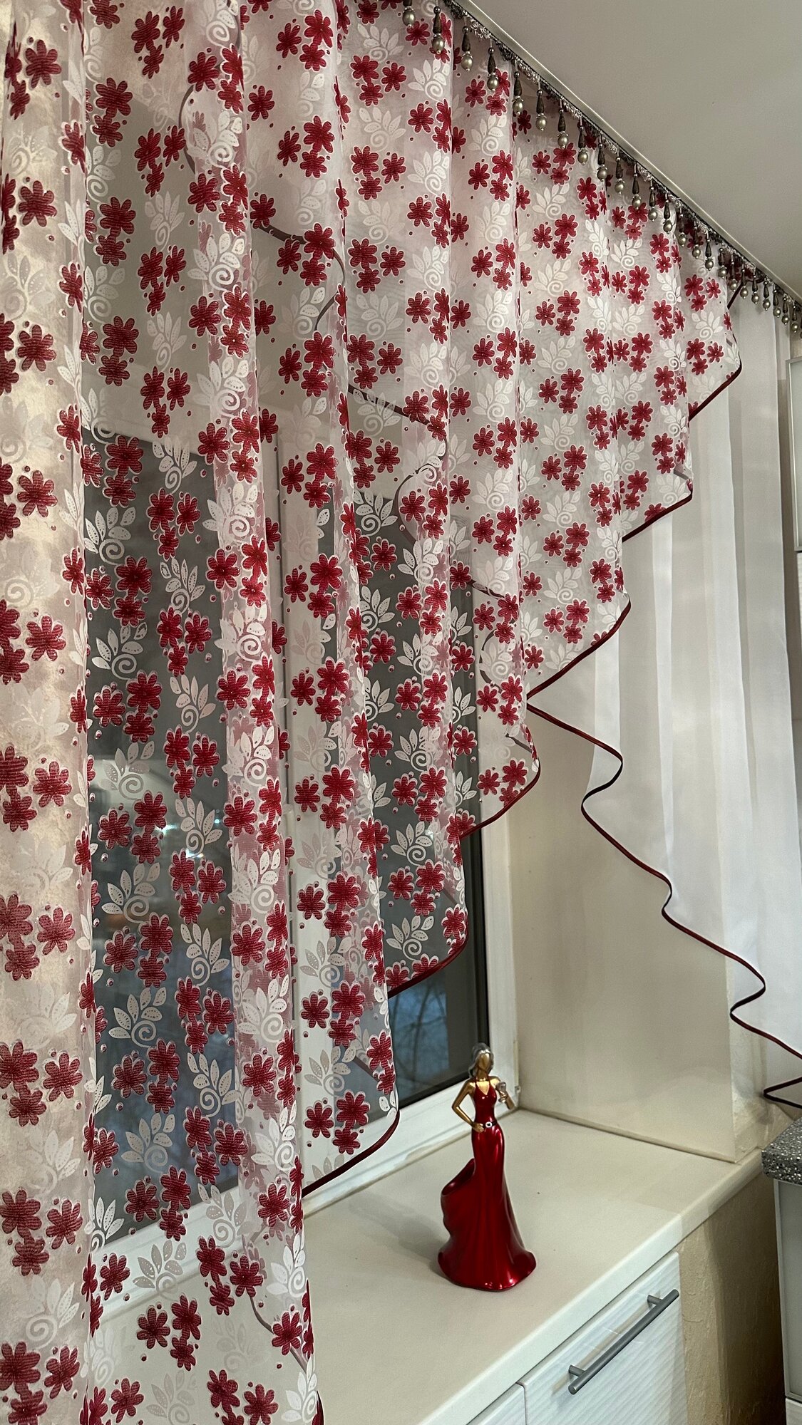 10 цен на Кухонная шторка с бордовыми цветами, ширина 3м, высота 1,7м