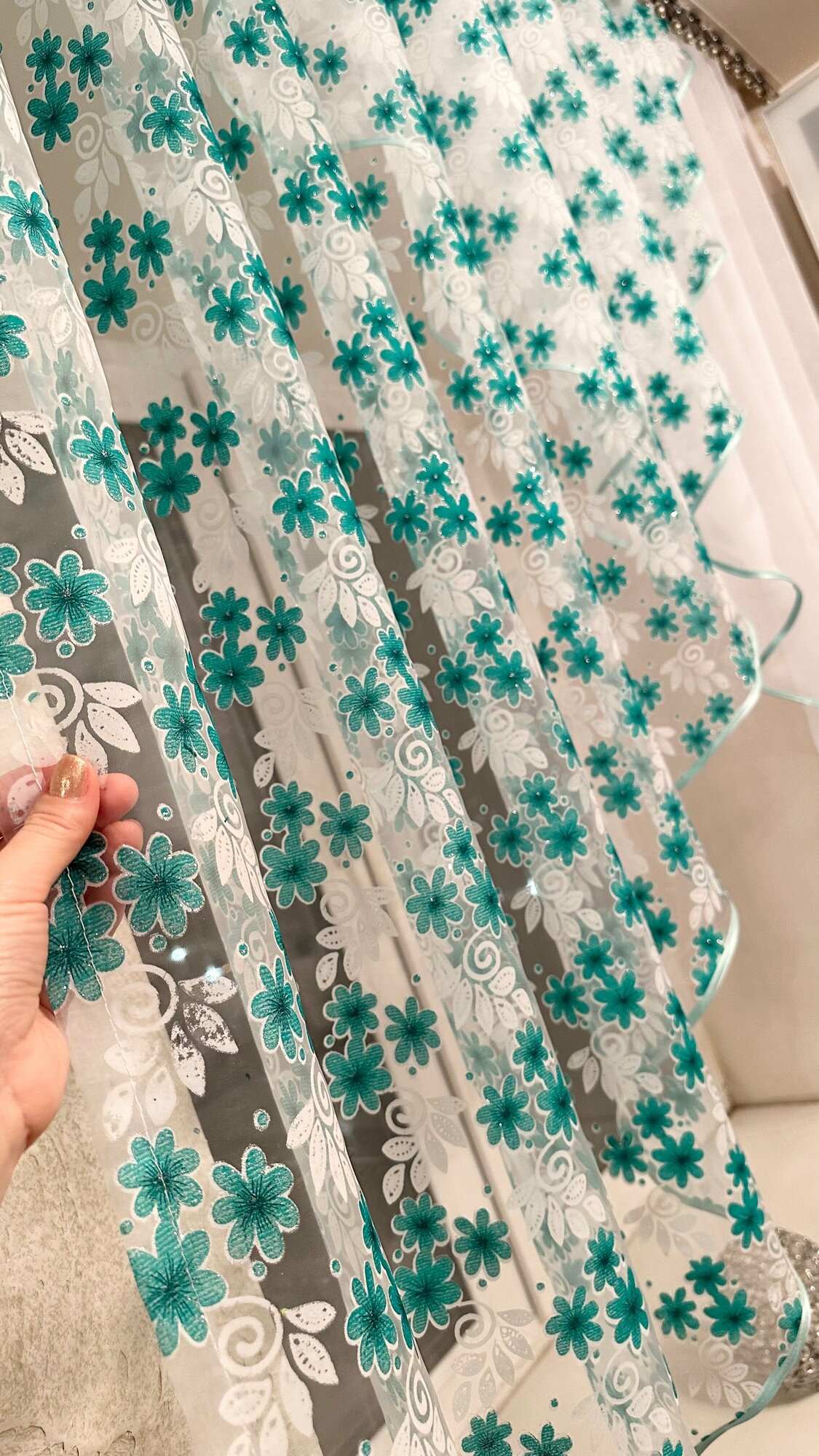 Кухонная шторка россыпь цветов бирюзовые, ширина3м, высота 1,7м информация: