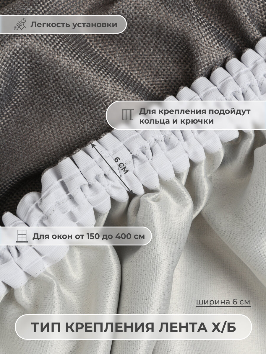 Шторы Блэкаут Рогожка 270Х400 Серые, Комплект из 2-х полотен, Крепление Лента, Цвет Серый информация: