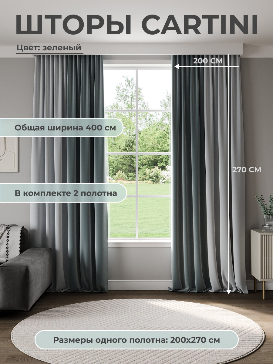 Шторы Блэкаут Рогожка 270Х400 Зеленые, Комплект из 2-х полотен, Крепление Лента, Цвет Серый информация: