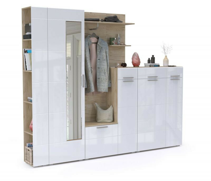 | Особенности | глянцевые фасады, для узкой прихожей, модульная конструкция, со штангой для вешалок, шкаф с зеркалом |