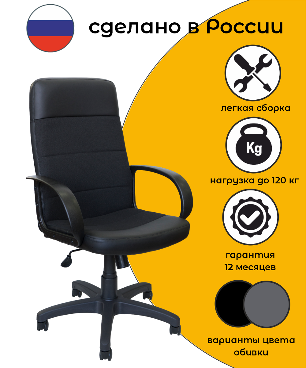 10 цен на Кресло Компьютерное Руководителя для Офиса и Дома KR-5258, Офисное Кресло, Экокожа Ткань рогожка, Экокожа Черная Ткань Черная