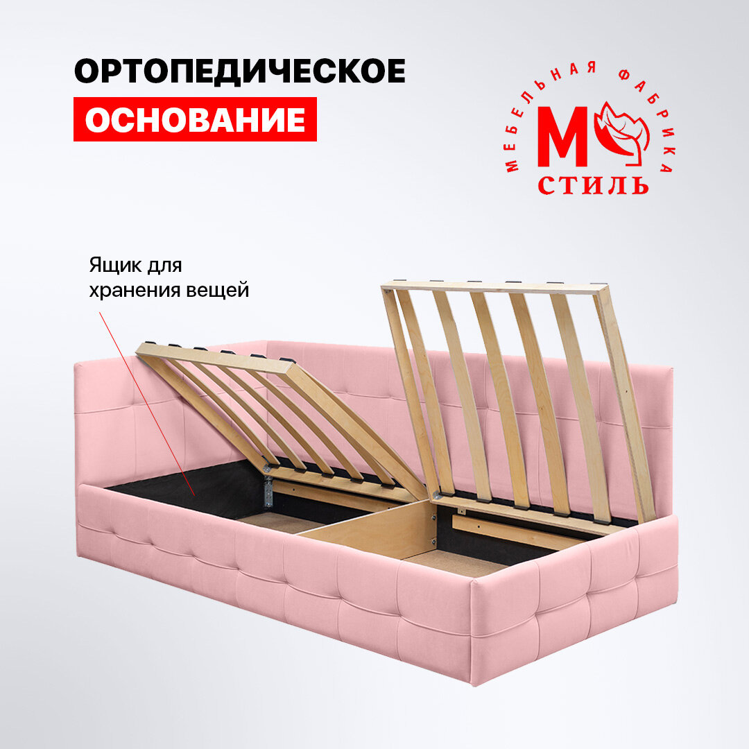Кровать-диван Банни 200*90 фламинго велюр, с матрасом и ящиком для хранения информация: