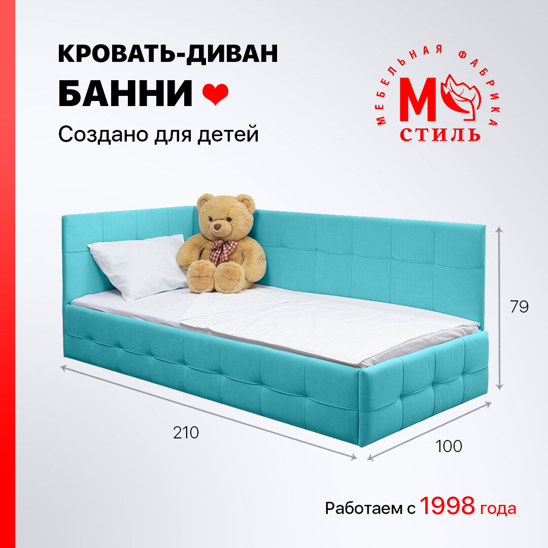 Отзывы на Кровать-диван Банни 200*90 бирюзовый велюр, с матрасом и ящиком для хранения