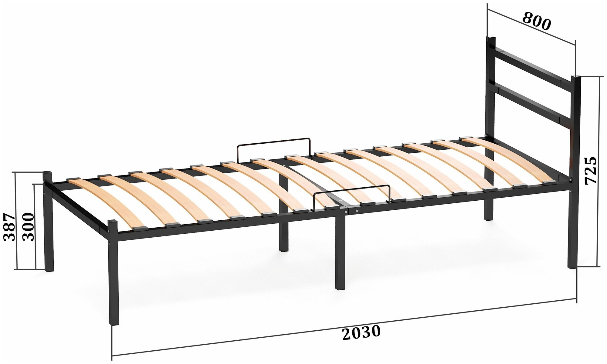 Кровать металлическая разборная Элимет 180*200см с опорами и спинкой компакт
