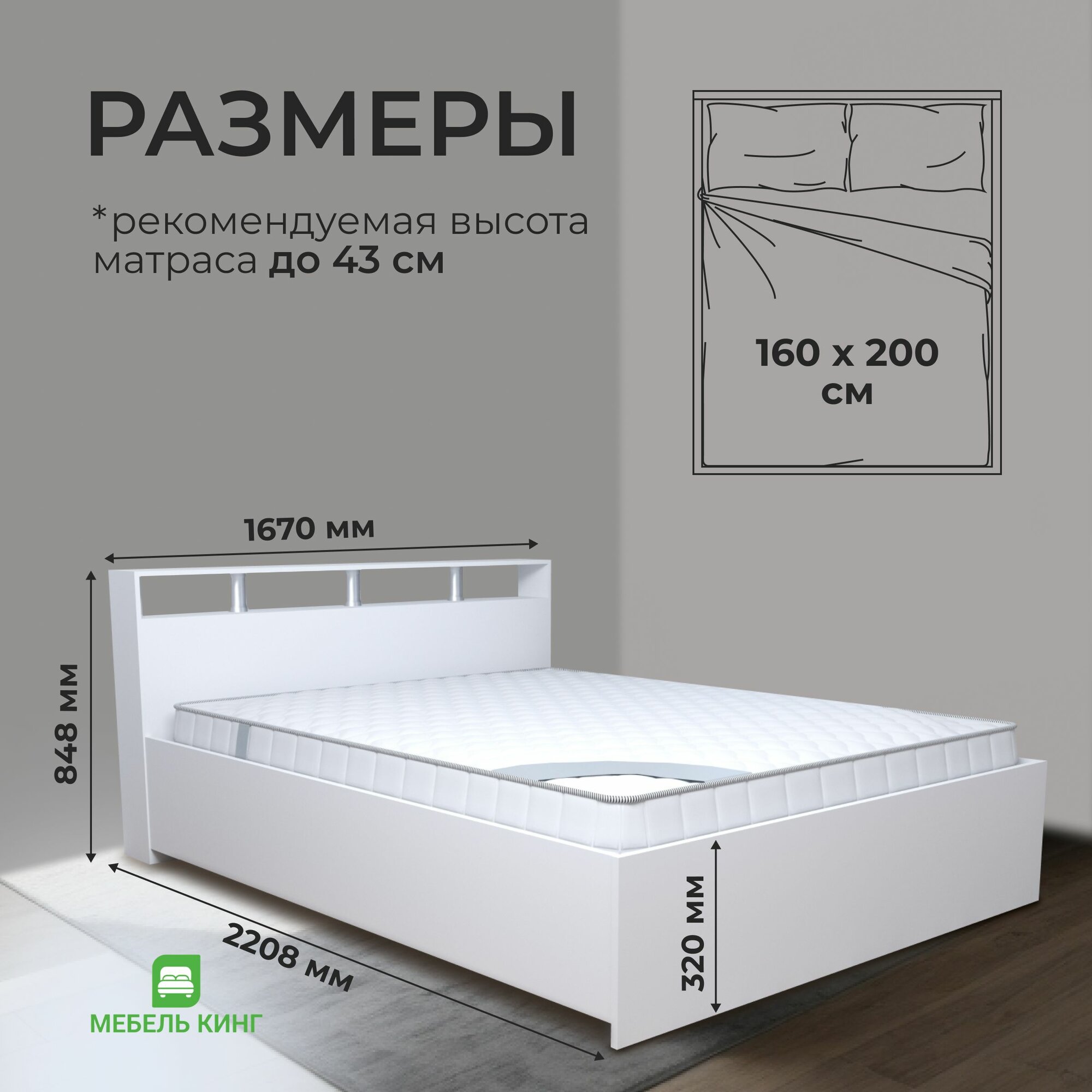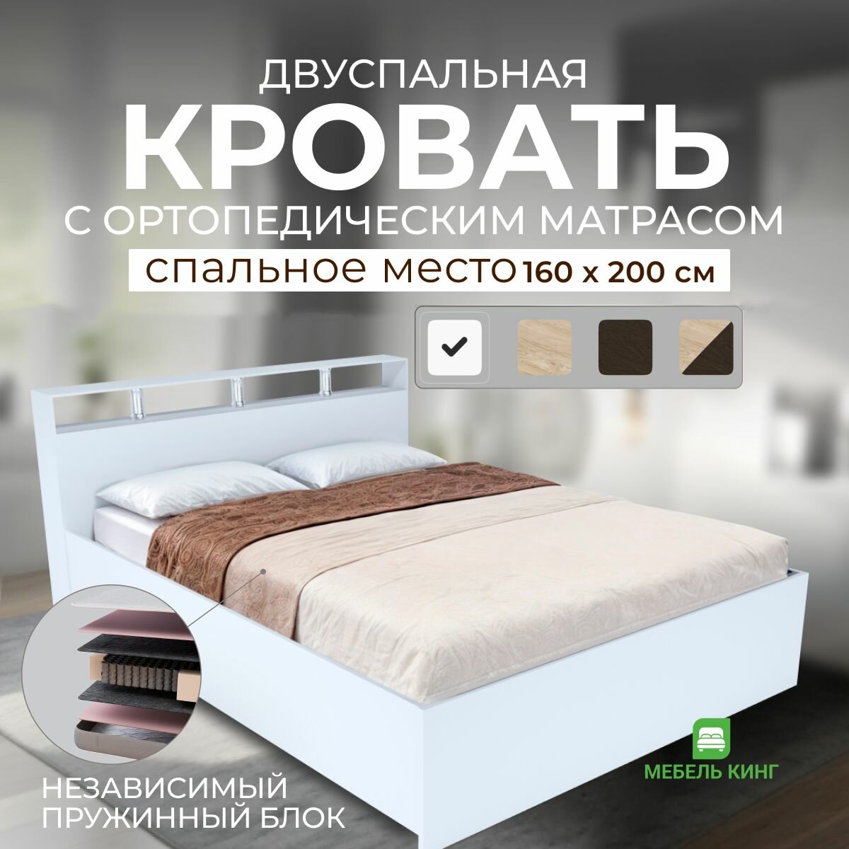 Двуспальная кровать 160х200 Саломея с ортопедическим матрасом, независимый пружинный блок, белый информация: