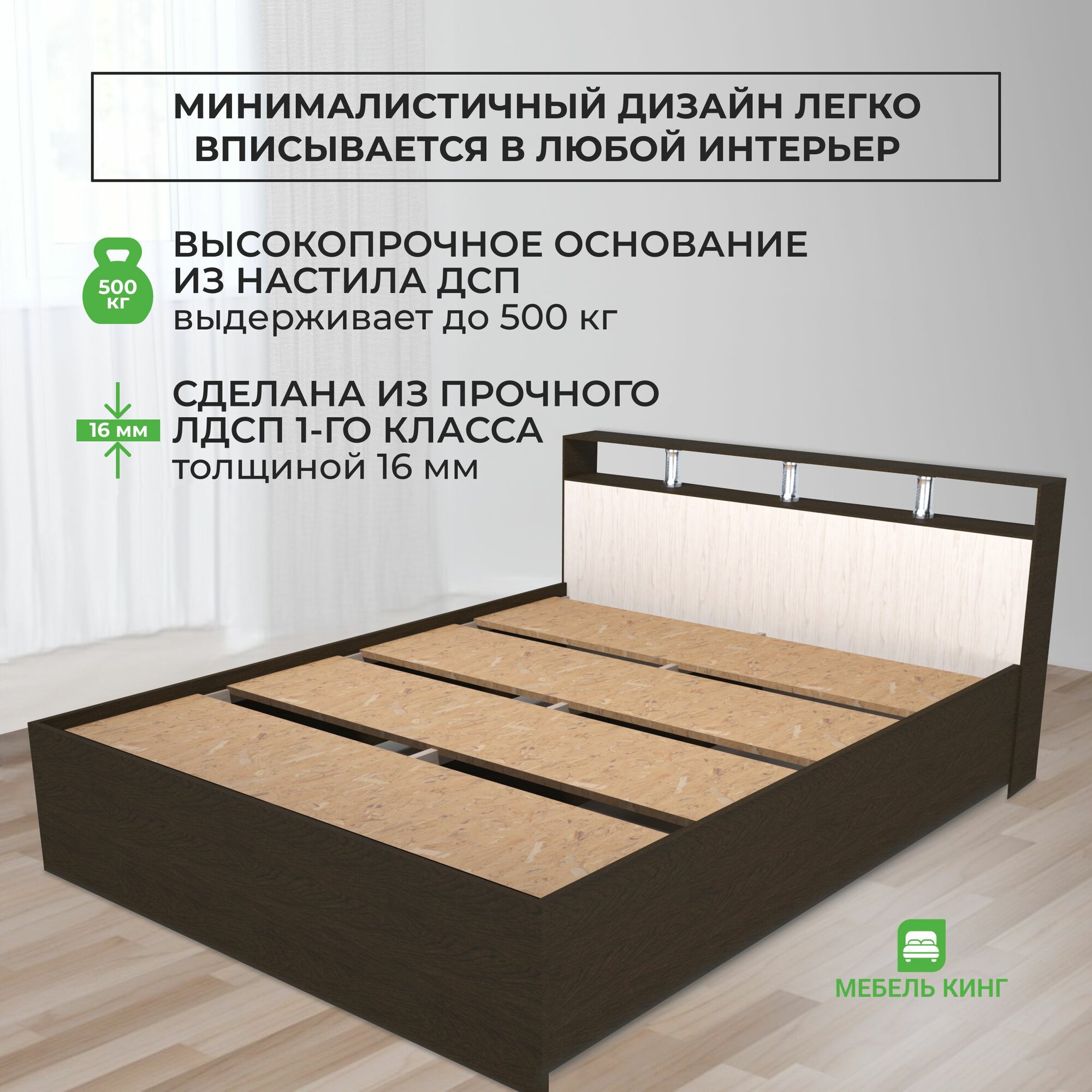 Двуспальная кровать 140х200 Саломея с ортопедическим матрасом, независимый пружинный блок, венге/дуб 22 841 ₽
