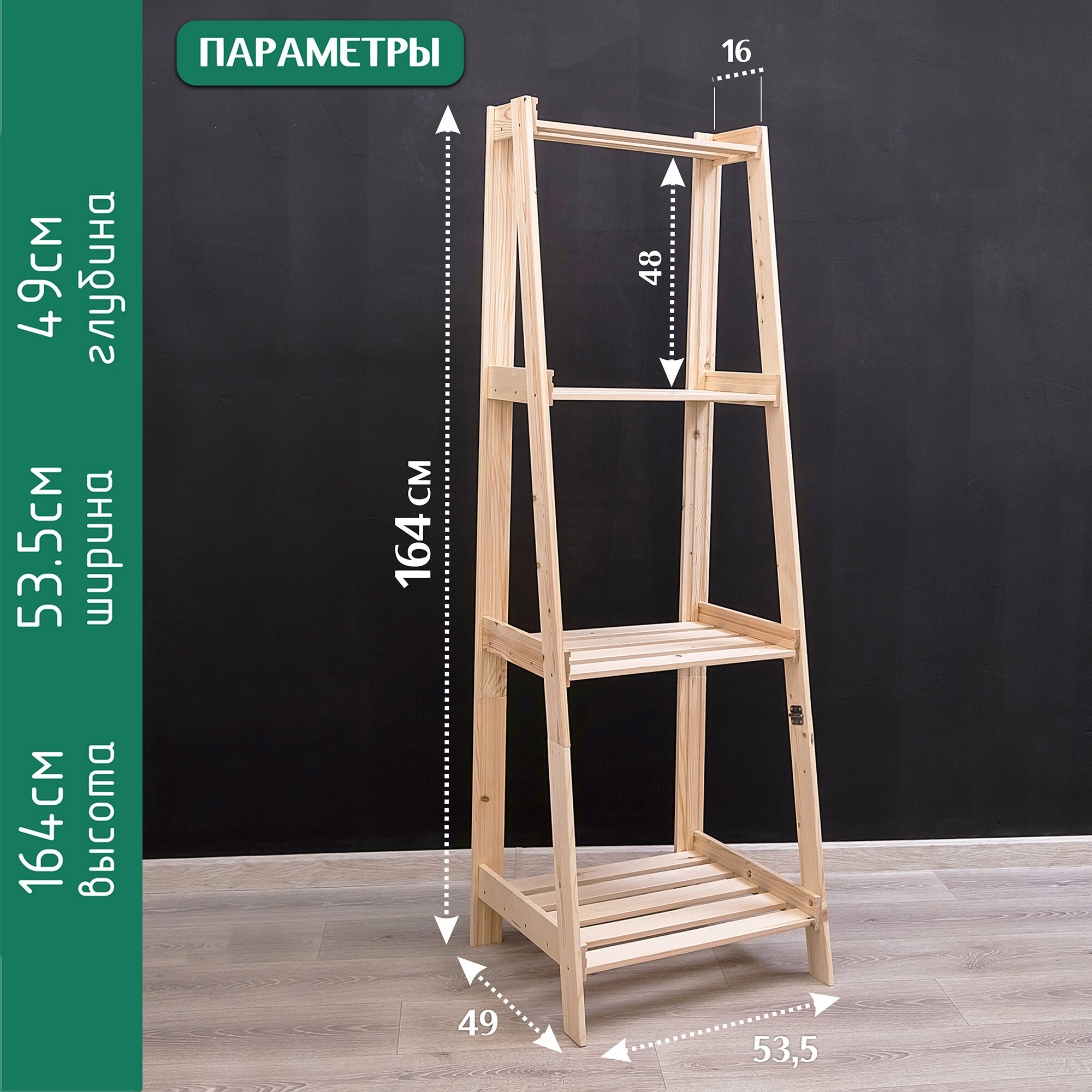 Стеллаж лесенка деревянный 164*53,5*49 см, 4 полки 3 100 ₽