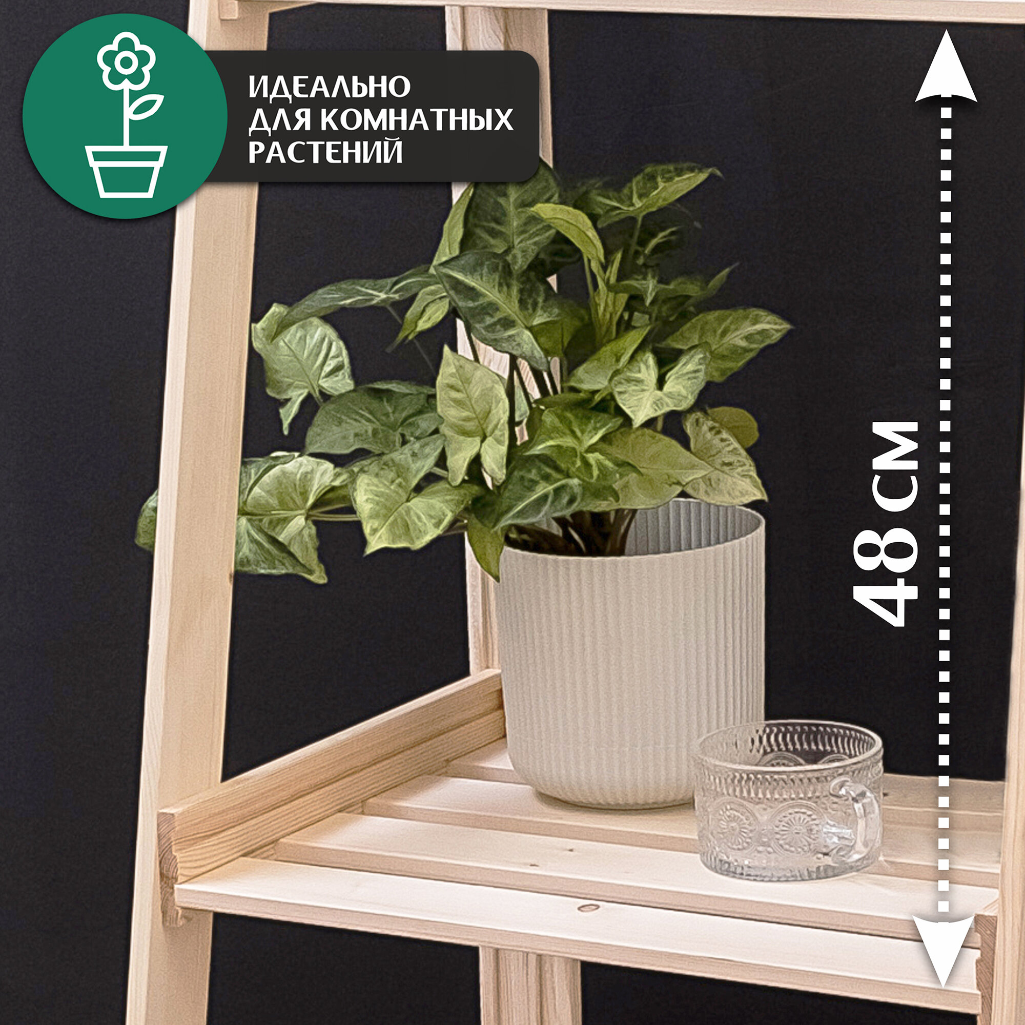 Стеллаж деревянный подставка для цветов и растений 3 полки