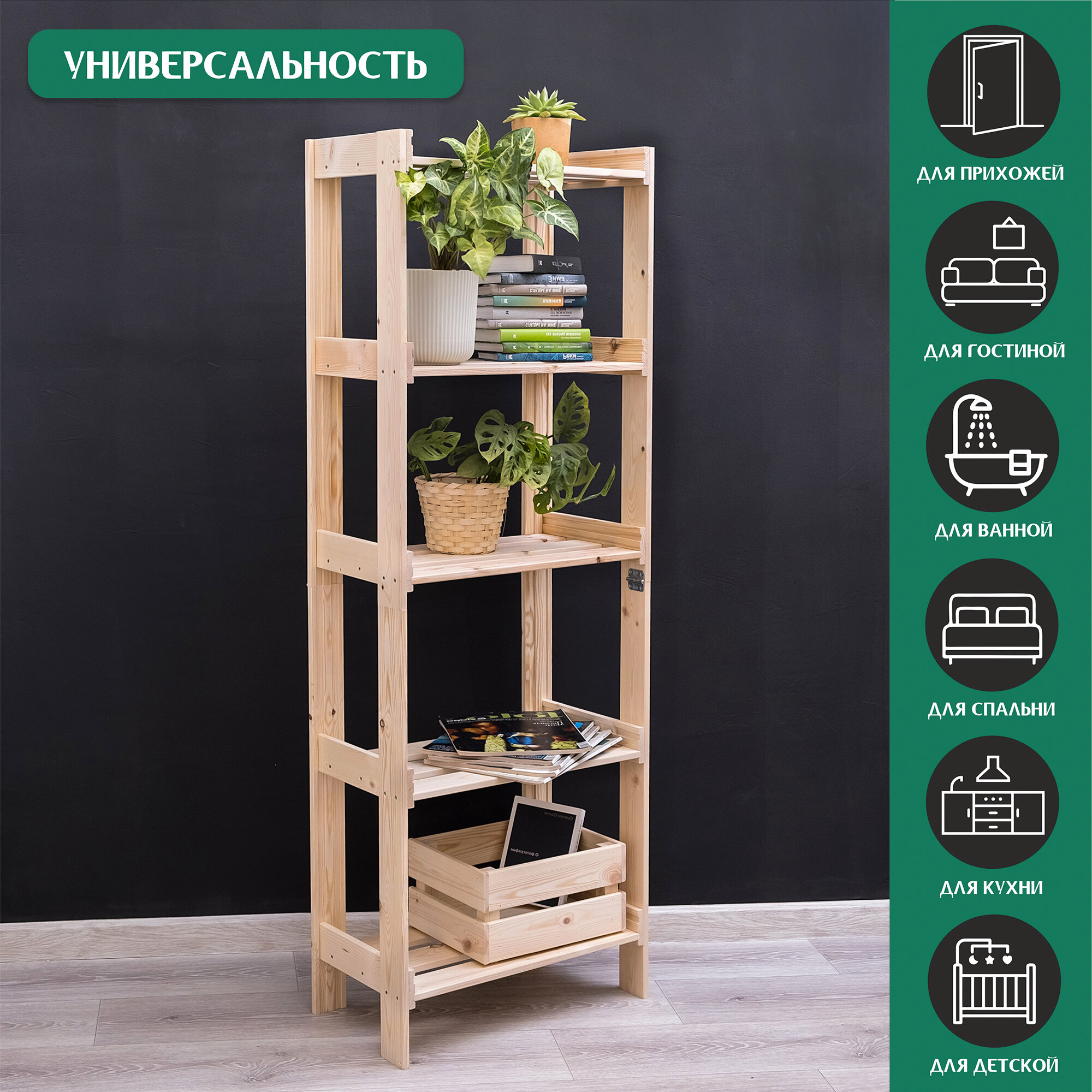 Стеллаж деревянный высокий узкий информация: