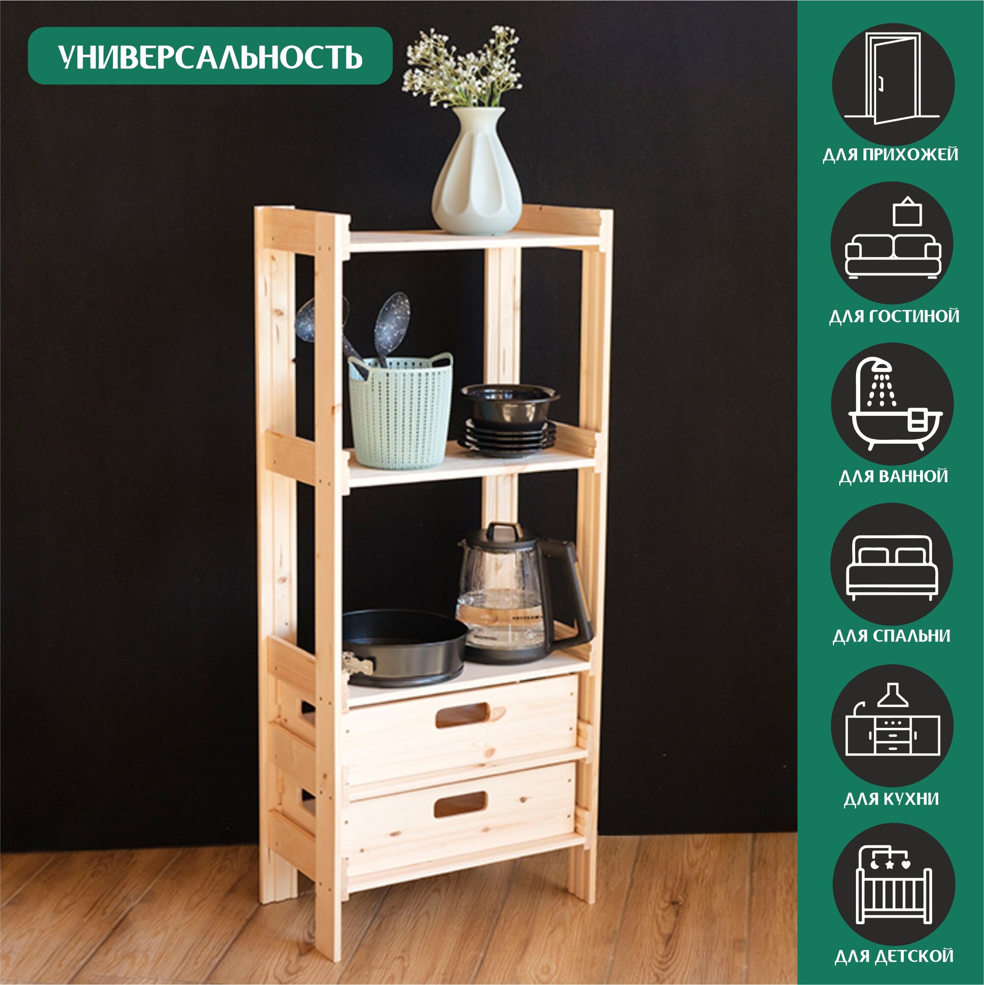 10 цен на Стеллаж-комод деревянный с 2 ящиками и 3 сплошными полками