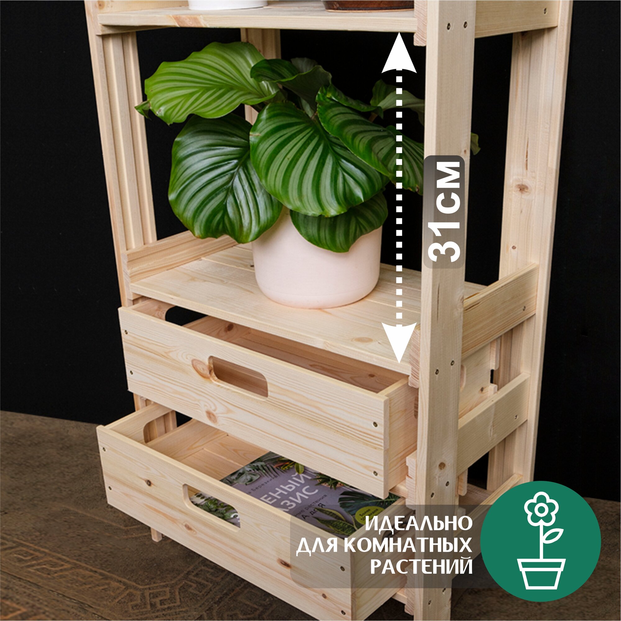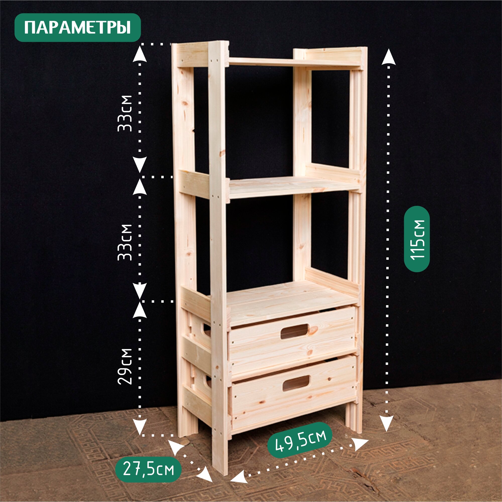 Стеллаж-комод деревянный с 2 ящиками и 3 сплошными полками информация: