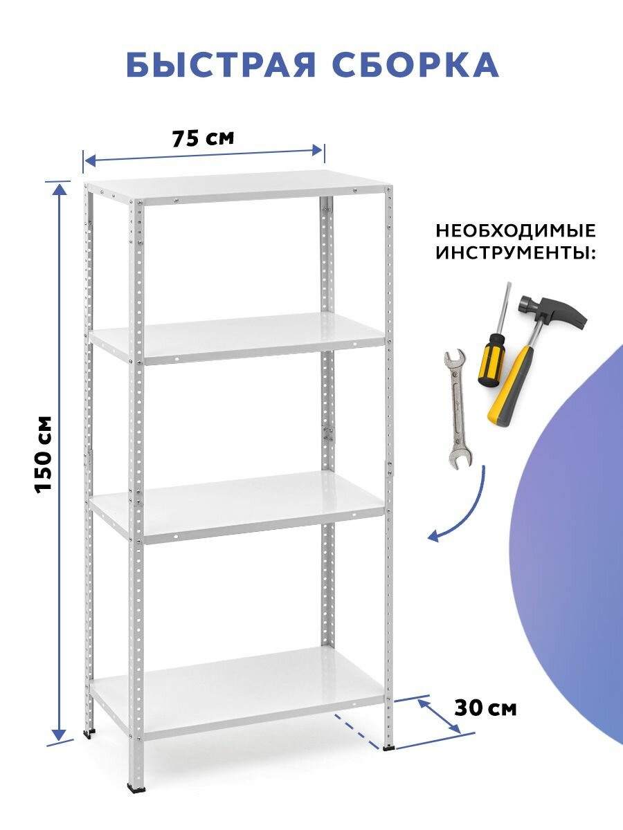 Стеллаж металлический болтовой GASTRORAG GR-005-5, 4 полки, размеры 150х75х30 см, этажерка для кухни, мебель лофт, подставка для цветов и рассады, система хранения для дома, дачи и гаража информация: