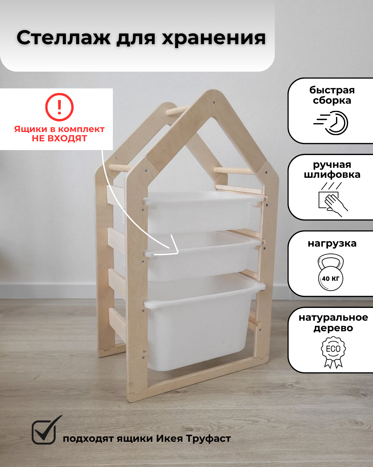 Стеллаж деревянный напольный в детскую для хранения игрушек и книг информация: