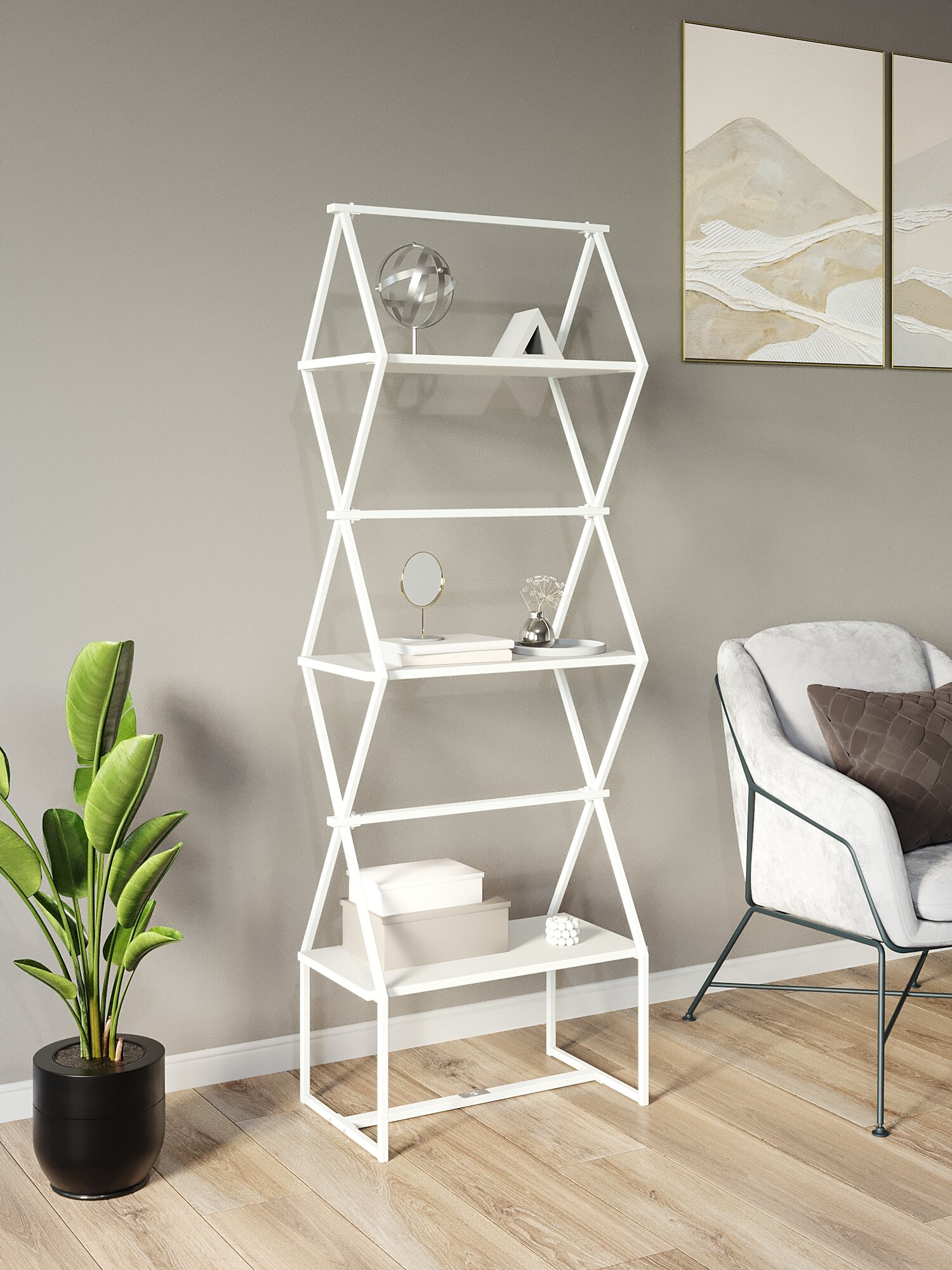 Стеллаж для книг KM LOFT Ромбо стSL белый/белый лофт для дома в гостинную перегородка информация: