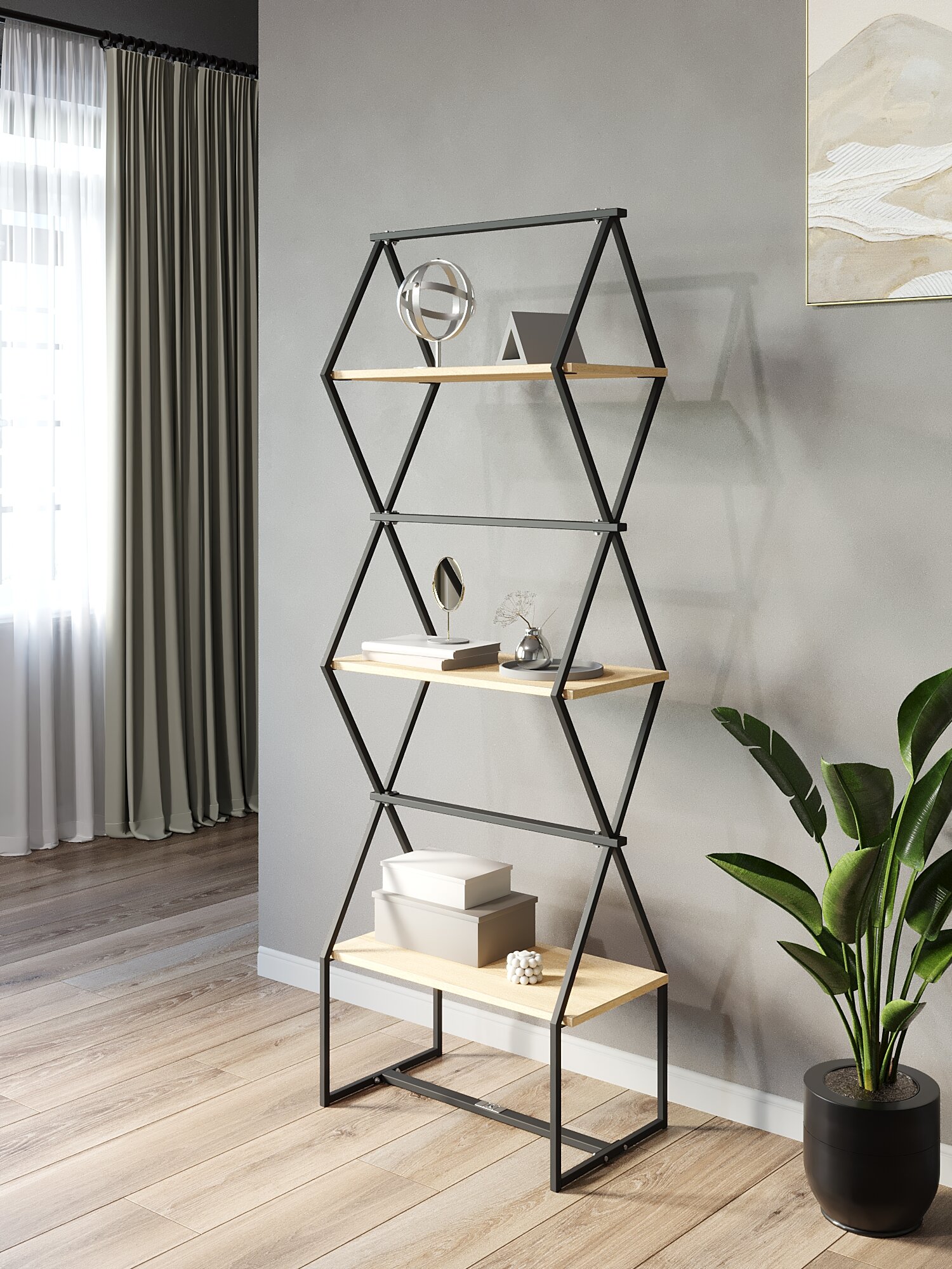 Стеллаж для книг KM LOFT Ромбо стSL черный/дуб сонома лофт для дома в гостинную перегородка информация: