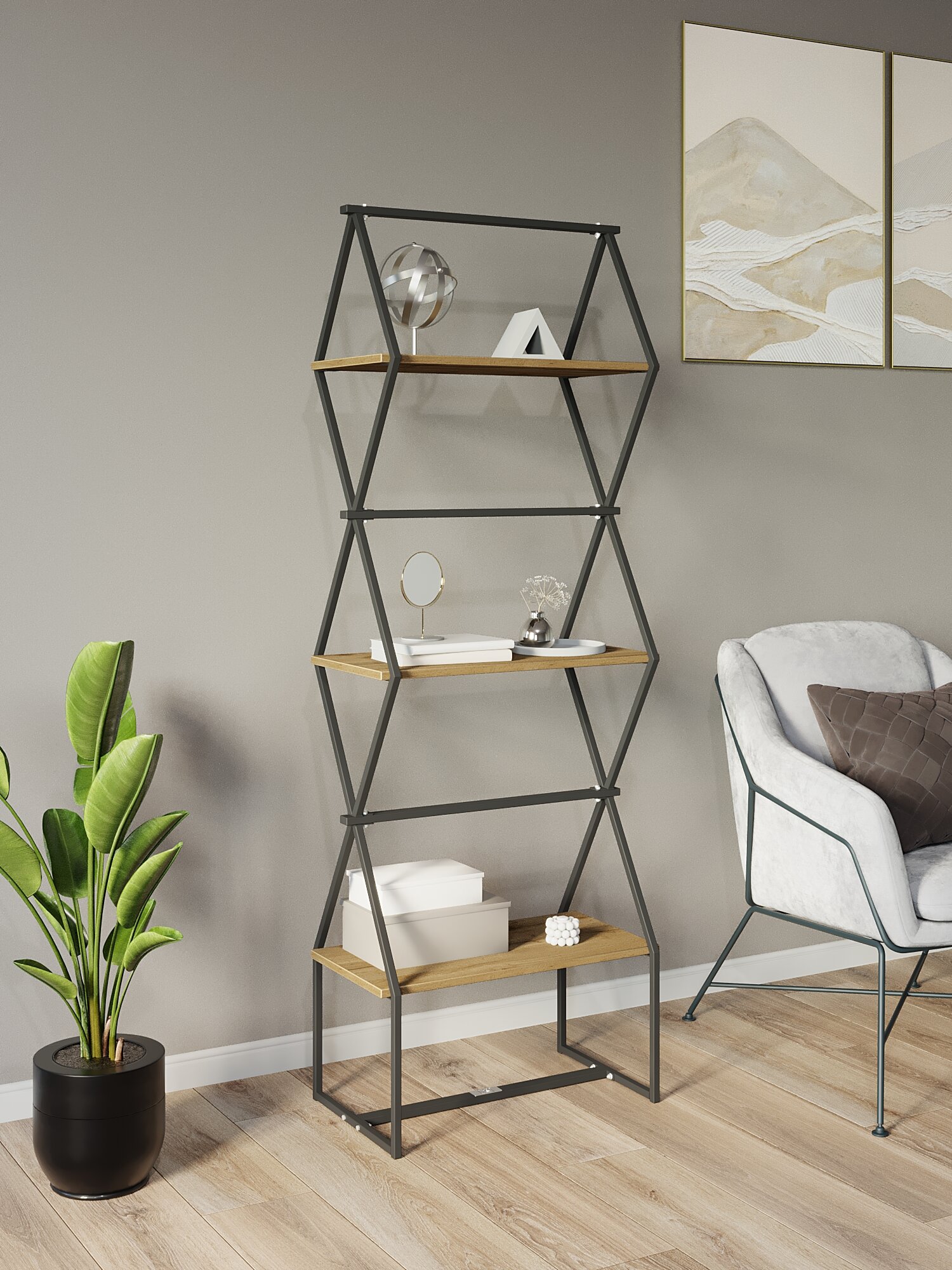 Стеллаж для книг KM LOFT Ромбо стSL черный/дуб вотан лофт для дома в гостинную перегородка информация: