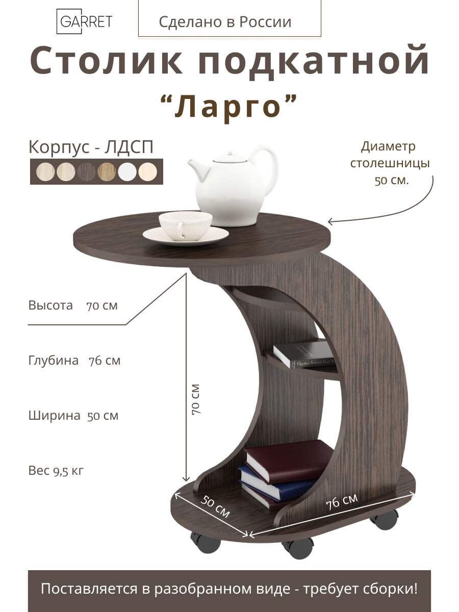 Придиванный столик "Ларго" GARRET h=70 см цвет: венге информация: