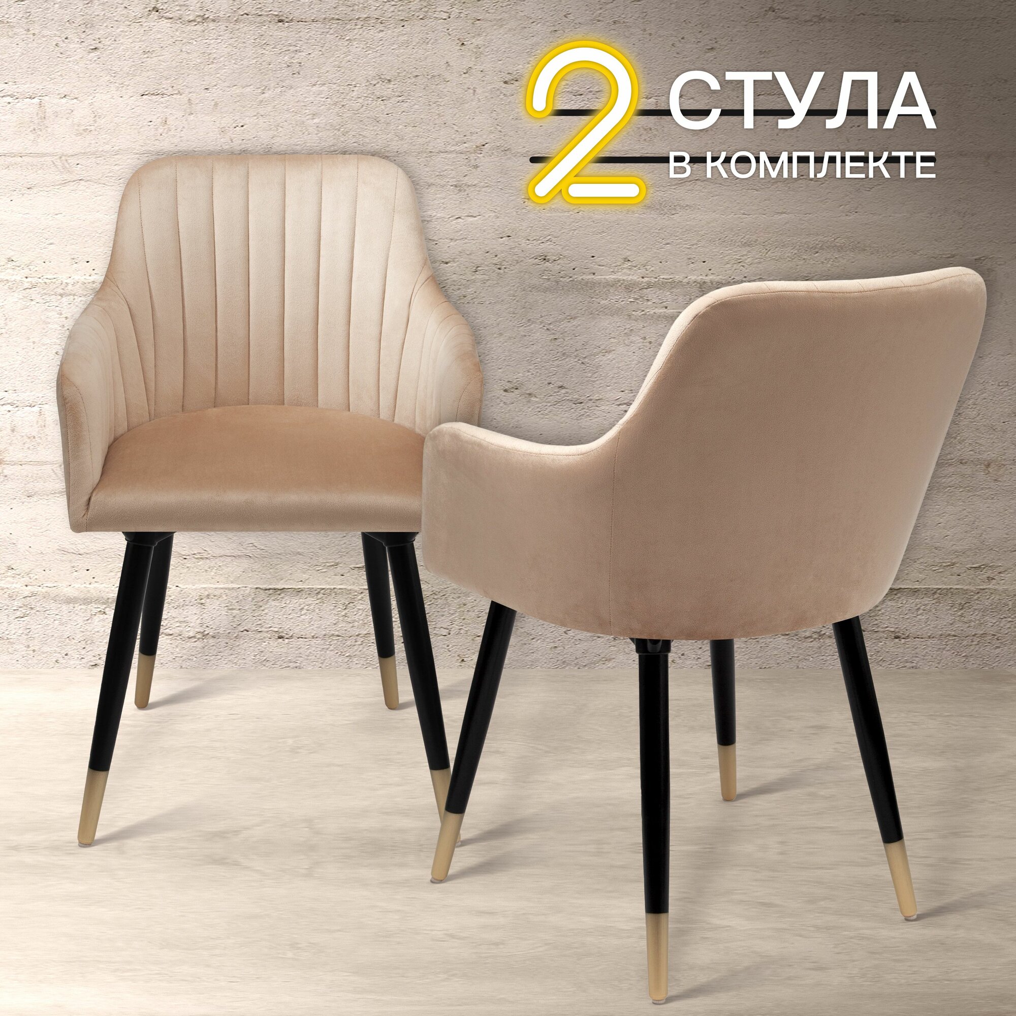 10 цен на Стулья для кухни Босс мягкие со спинкой, обеденные для гостиной, ножки дерево, бежевый вельвет, 2 штуки, АМИ мебель, РБ