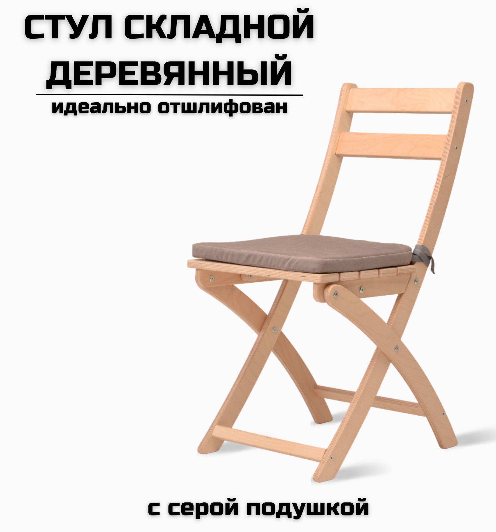 Отзывы на Стул складной деревянный для дома и дачи, шлифованный, с серой подушкой