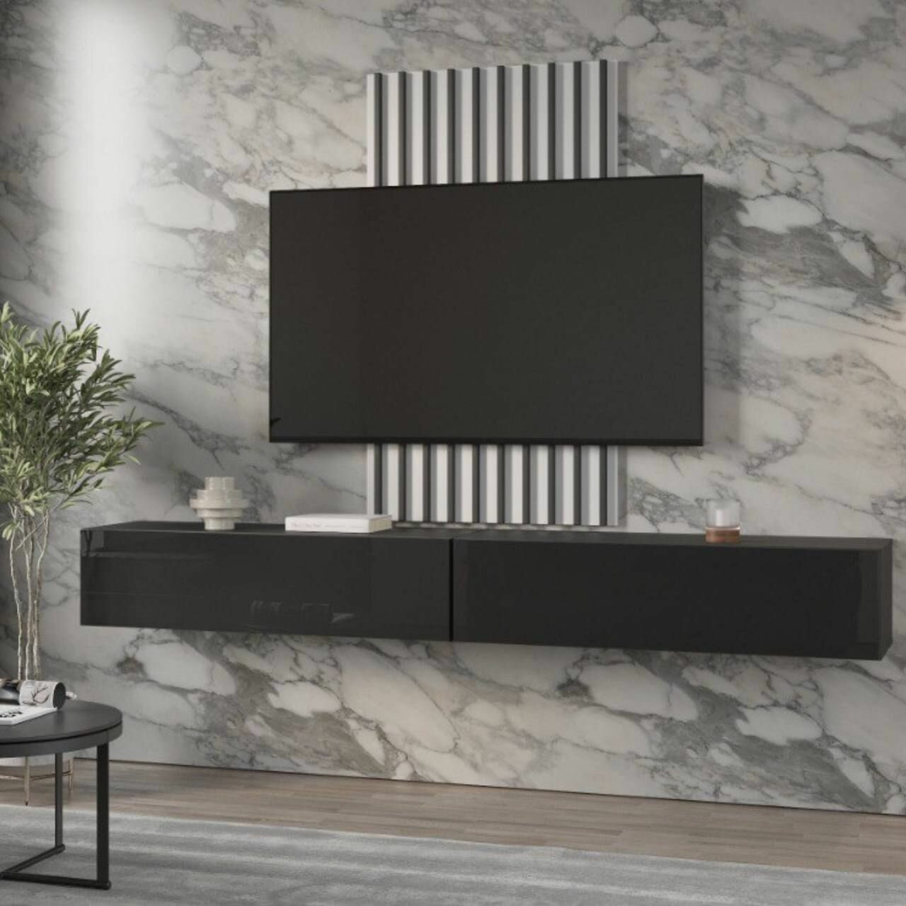Тумба под телевизор, навесной модульный шкаф POINT 50 Черный глянец МДФ 12 120 ₽