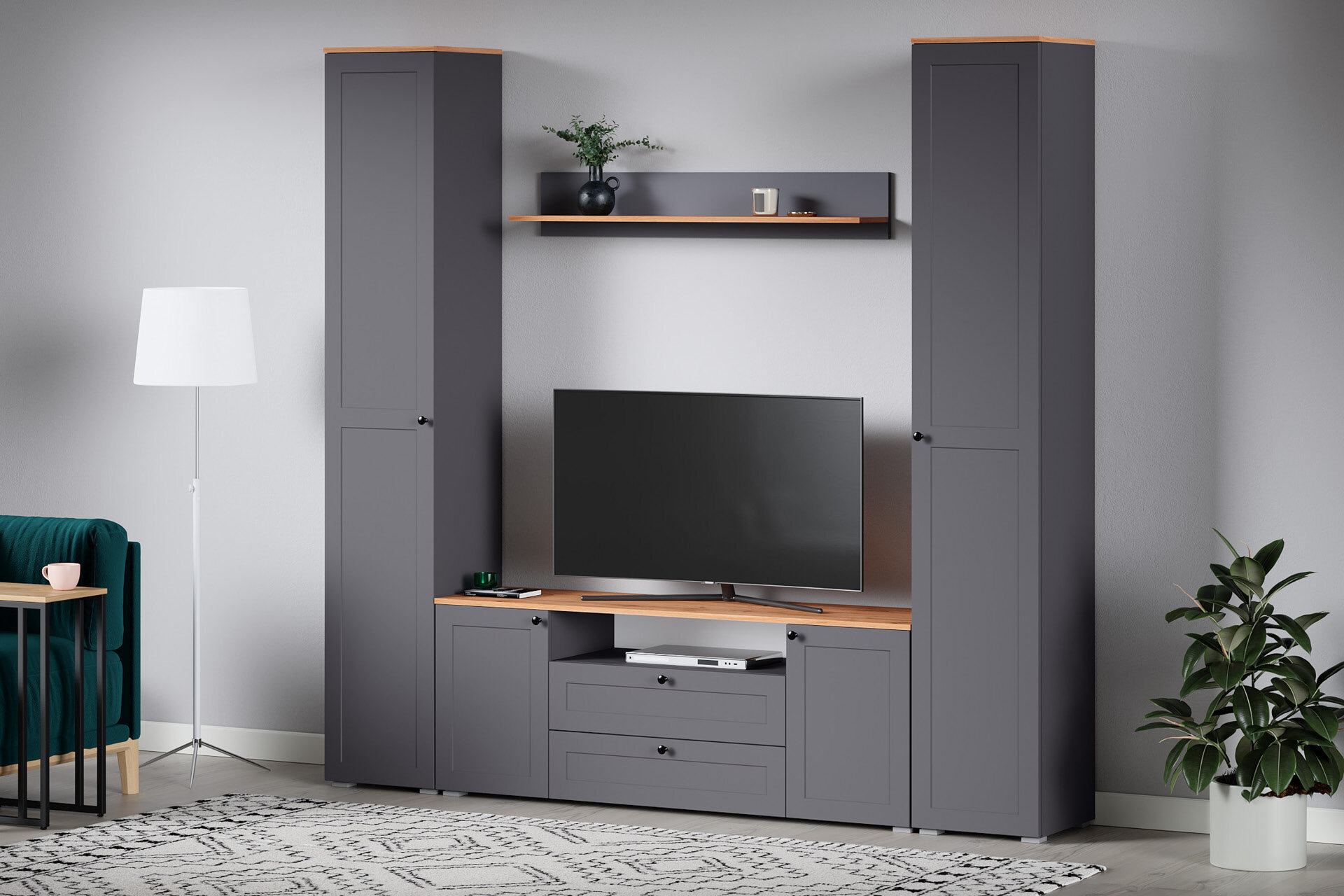 Остин Шкаф-пенал 13.225 Серый Графит 0162 РЕ, Дуб Вотан 065 R, графит ZB 856-2 ПВХ