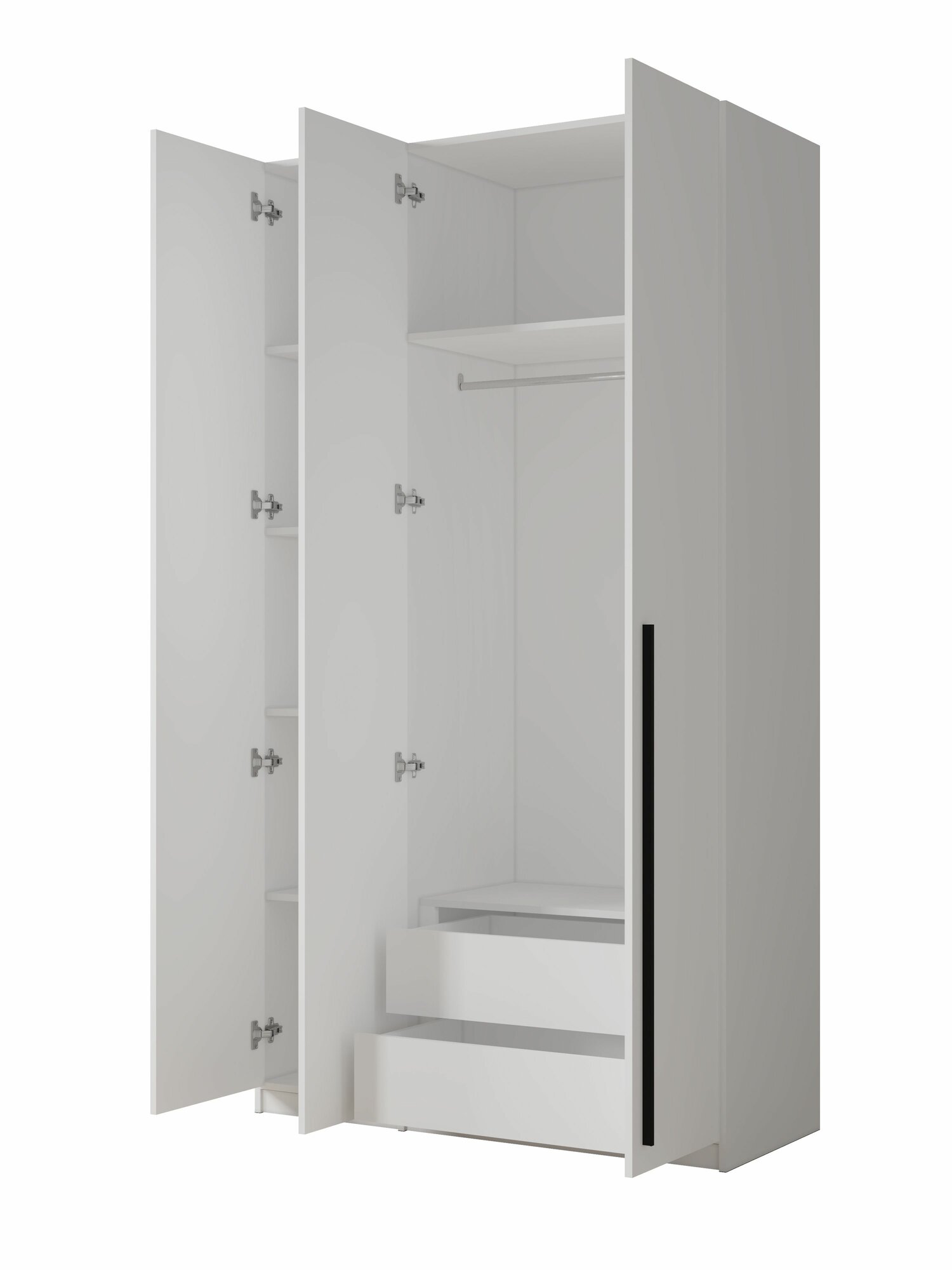Шкаф для одежды распашной Нонтон Луас, 120 см, 7 полок и штанга, белый глянец