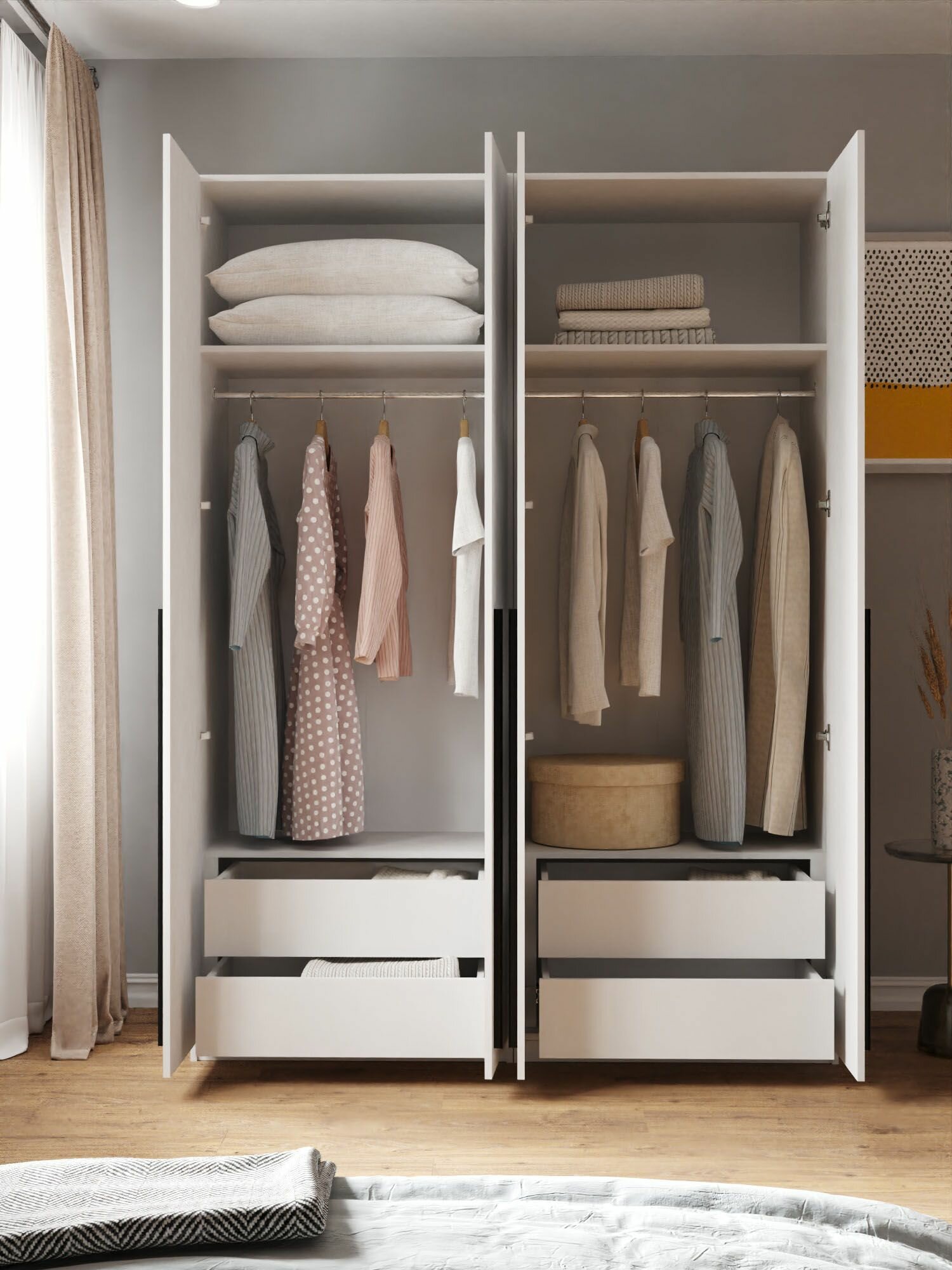 Шкаф распашной Мори-3 Белый для одежды двухдверный 100*250*50 Мегамебель