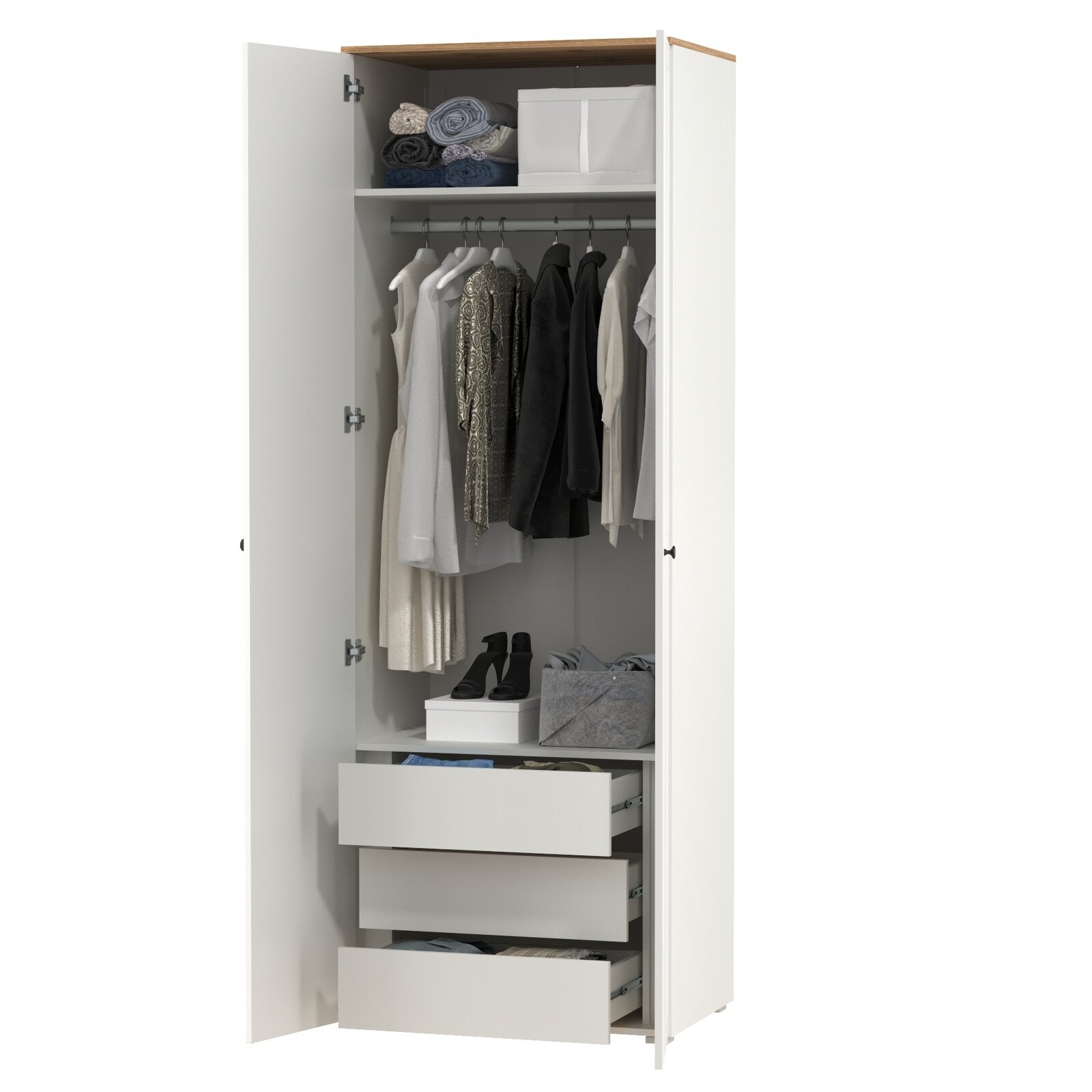 Шкаф для одежды две двери внутри три выдвижных ящика Остин 13.336.02 цвет белый шагрень/дуб крафт золотой 25 905 ₽