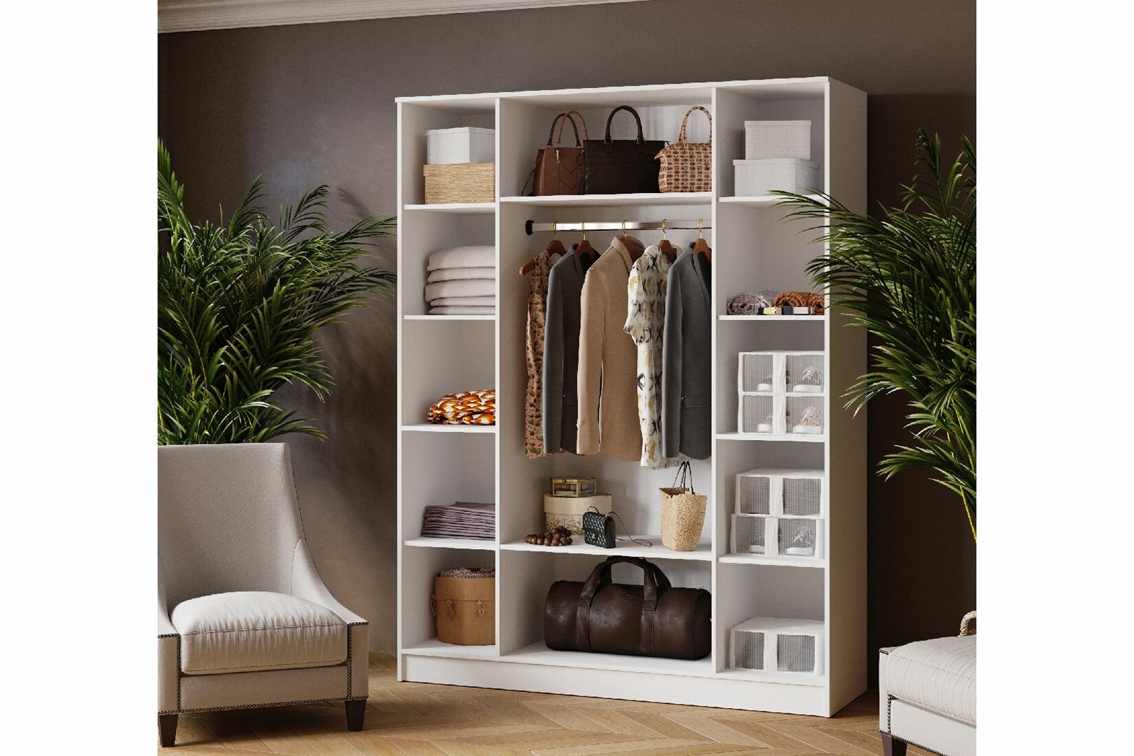 Шкаф для одежды распашной Нонтон Луас, 120 см, 7 полок и штанга, белый глянец