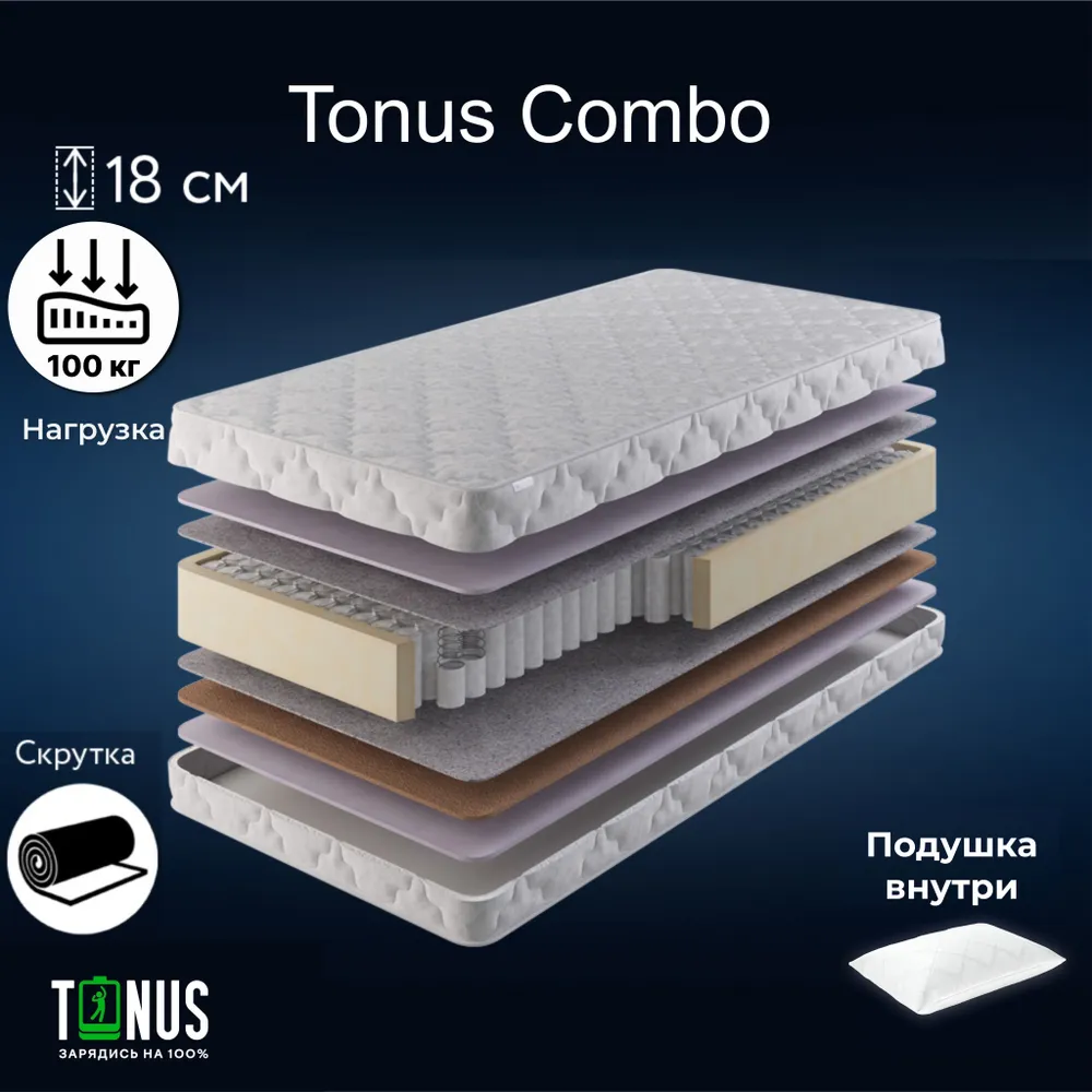 Матрас Tonus Combo, Независимые пружины, 180x200 см 17 749 ₽