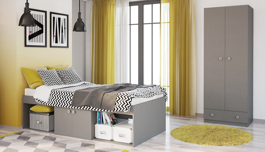 Детская кровать Polini Simple 3000 "с нишами" серого цвета информация: