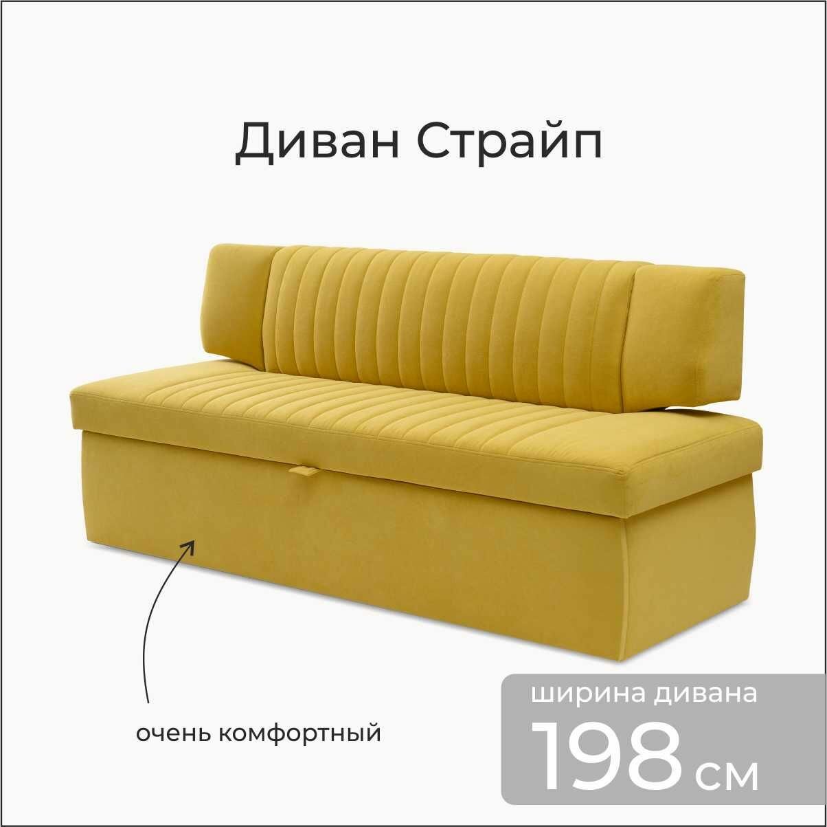 Кухонный раскладной диван Страйп 198х64х83 см. Мелисса 14, прямой диван со спальным местом, Жёлтый, Велюр 43 175 ₽