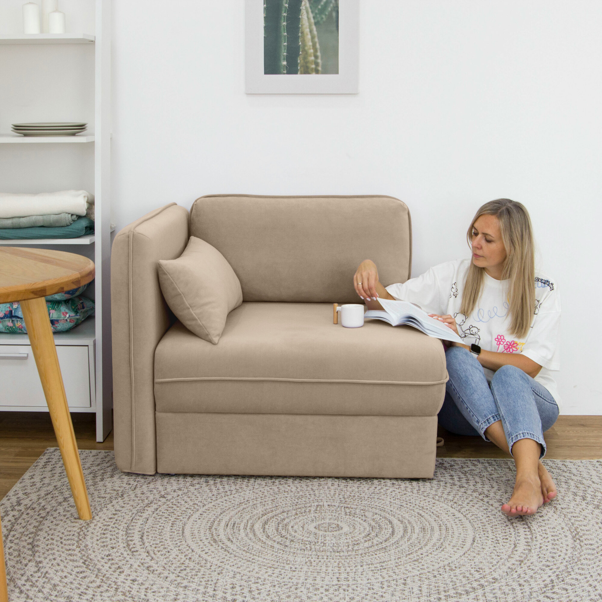 10 цен на Диван-кровать KRASDIVAN Олаф 80х100 см, с ящиком для белья, велюр Domino 2 бежевый