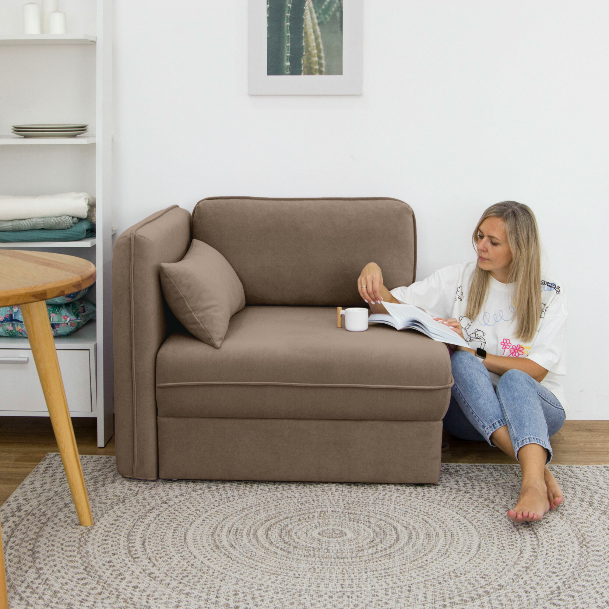 Диван-кровать KRASDIVAN Олаф 80х100 см, с ящиком для белья, велюр Domino 3 светло-коричневый информация: