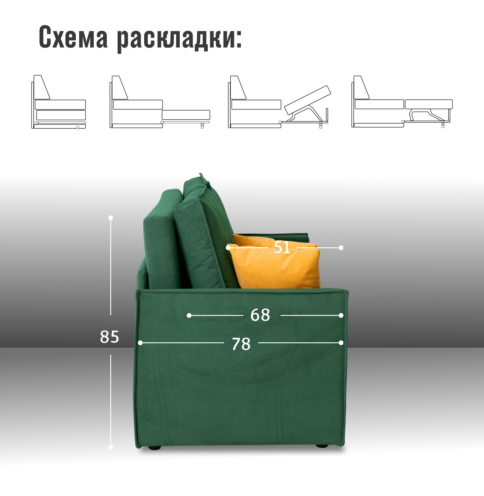 Диван - кровать Бонн с ортопедическим основанием, механизм выкатной, 133 х 78 х 85 см, зеленый информация: