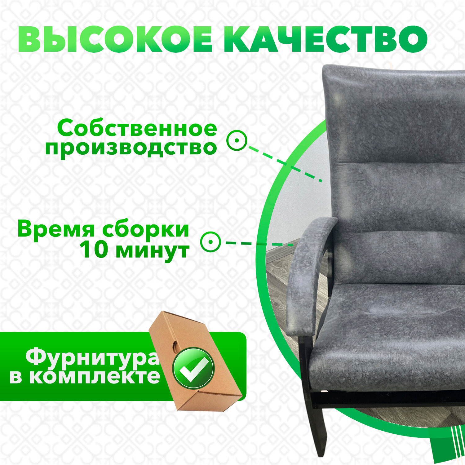 Отзывы на Кресло Классика мягкое из кожзама для отдыха в комнату, гостиную, спальню, для дома, серое