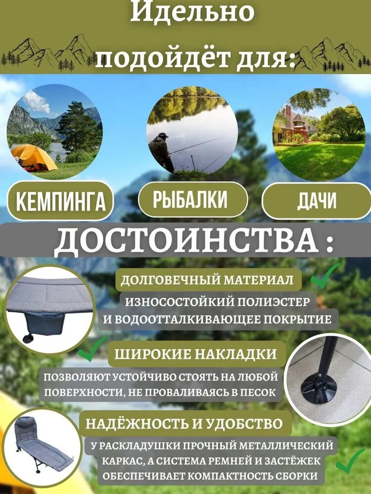 раскладушка с матрасом туристическая взрослая для сна для туризма и отдыха информация: