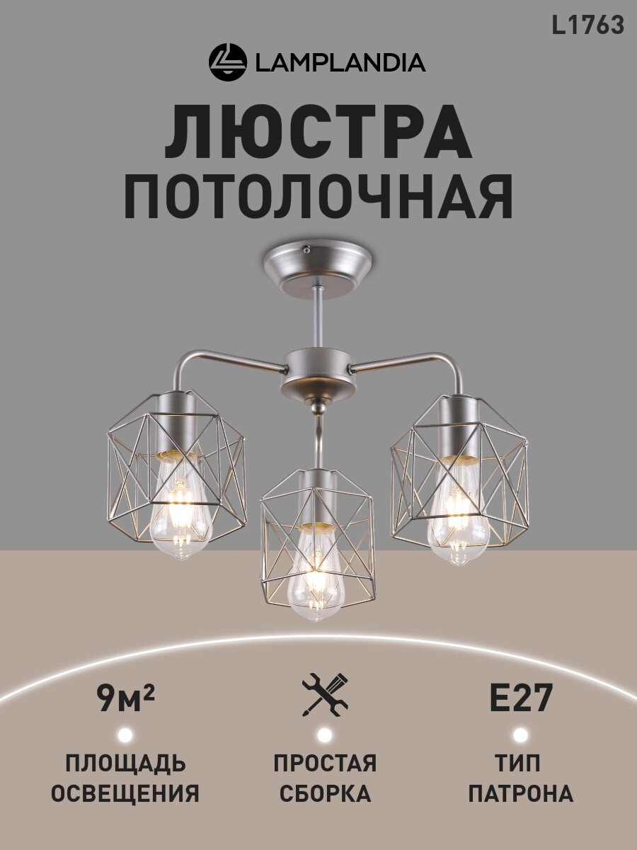 Отзывы на Люстра потолочная Lamplandia L1763 IVIKA SILVER, E27*3 макс 40Вт