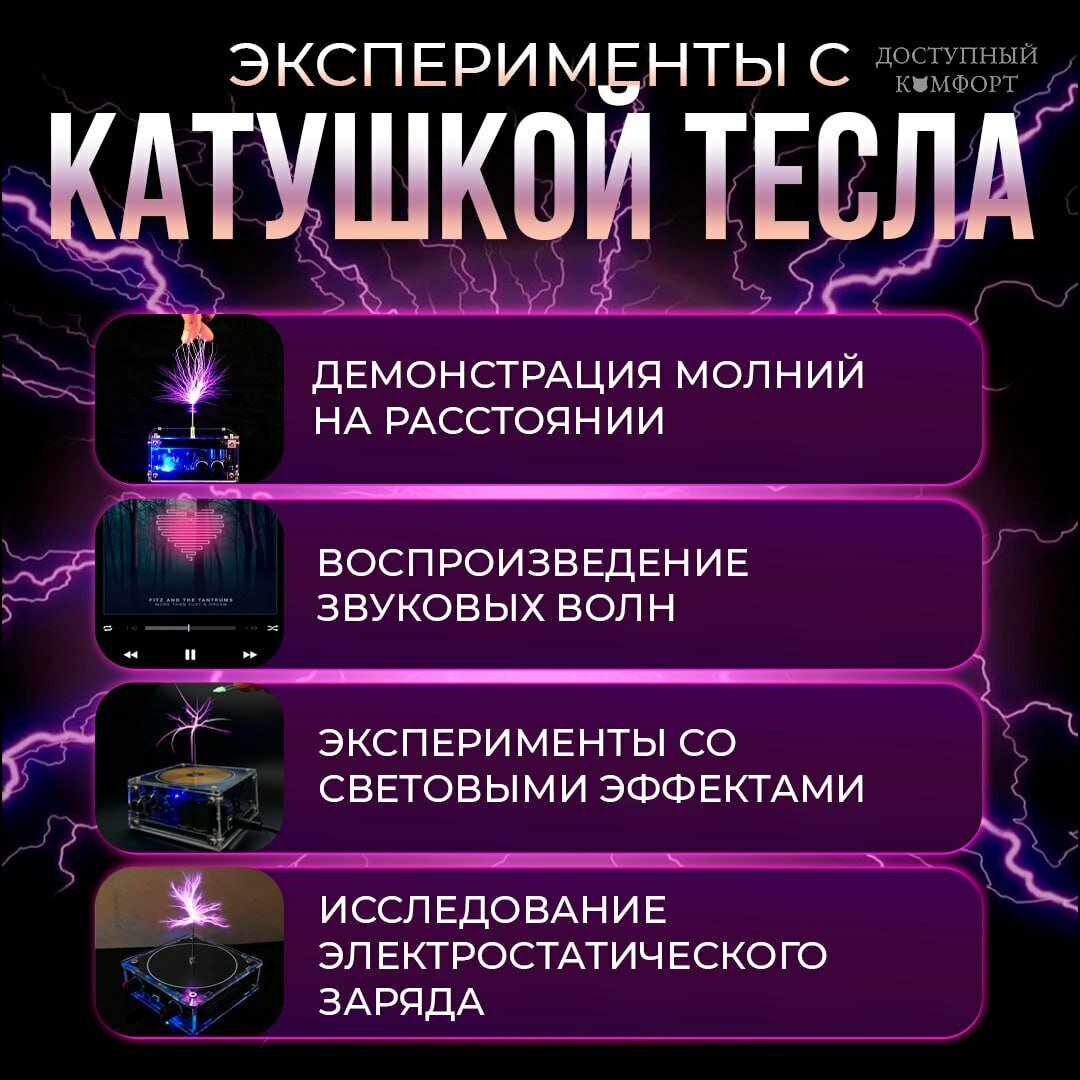 | Комплектация | Блок питания, катушка тесла, инструкция, плейлист с обработанной музыкой, 2 стикера |