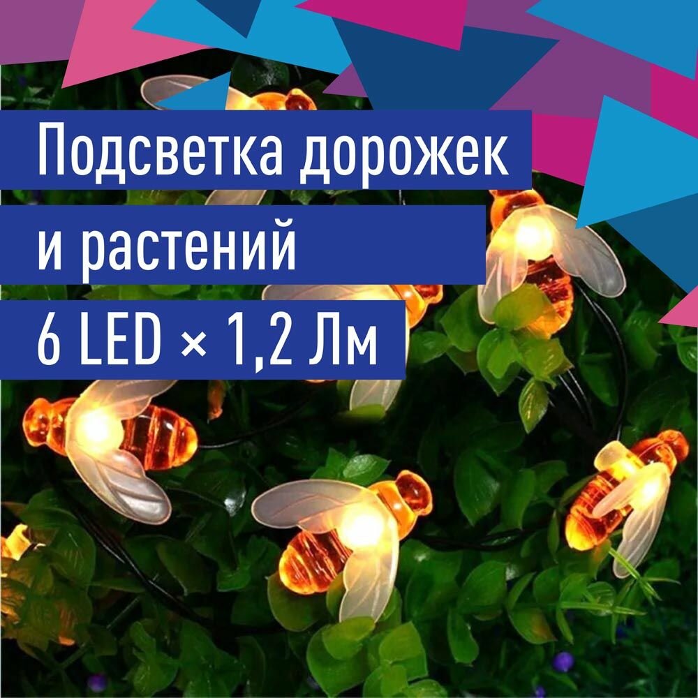 Садовый светильник на солнечной батарее, 6 пчёлок 6LED Космос информация: