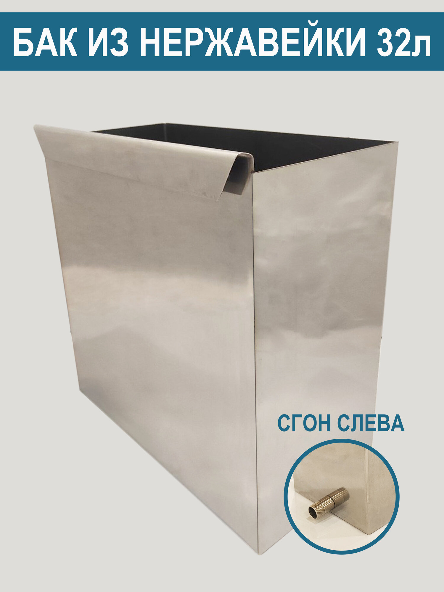 Бак из нержавеющей стали AiSi430 с крышкой, объем 32 литра, сгон слева информация: