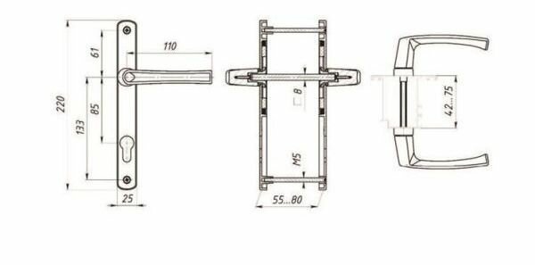 Отзывы на Комплект ручек для узкопрофильных замков ЛДМ FURAL 85.70.25.02.7016 антрацит с пружиной / Ручки для пластиковой двери