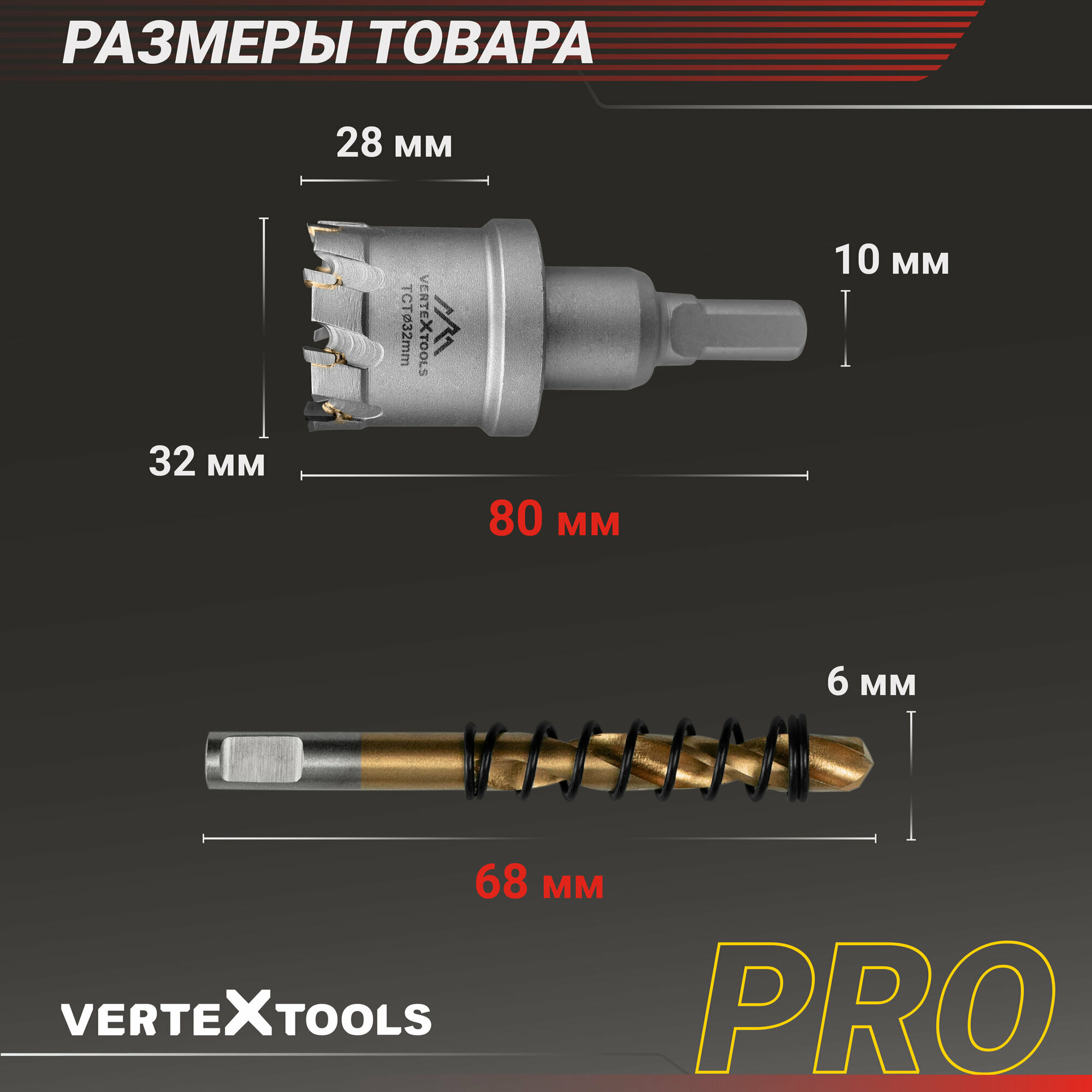 Коронка по металлу 32 мм. с центрирующим сверлом VertexTools информация: