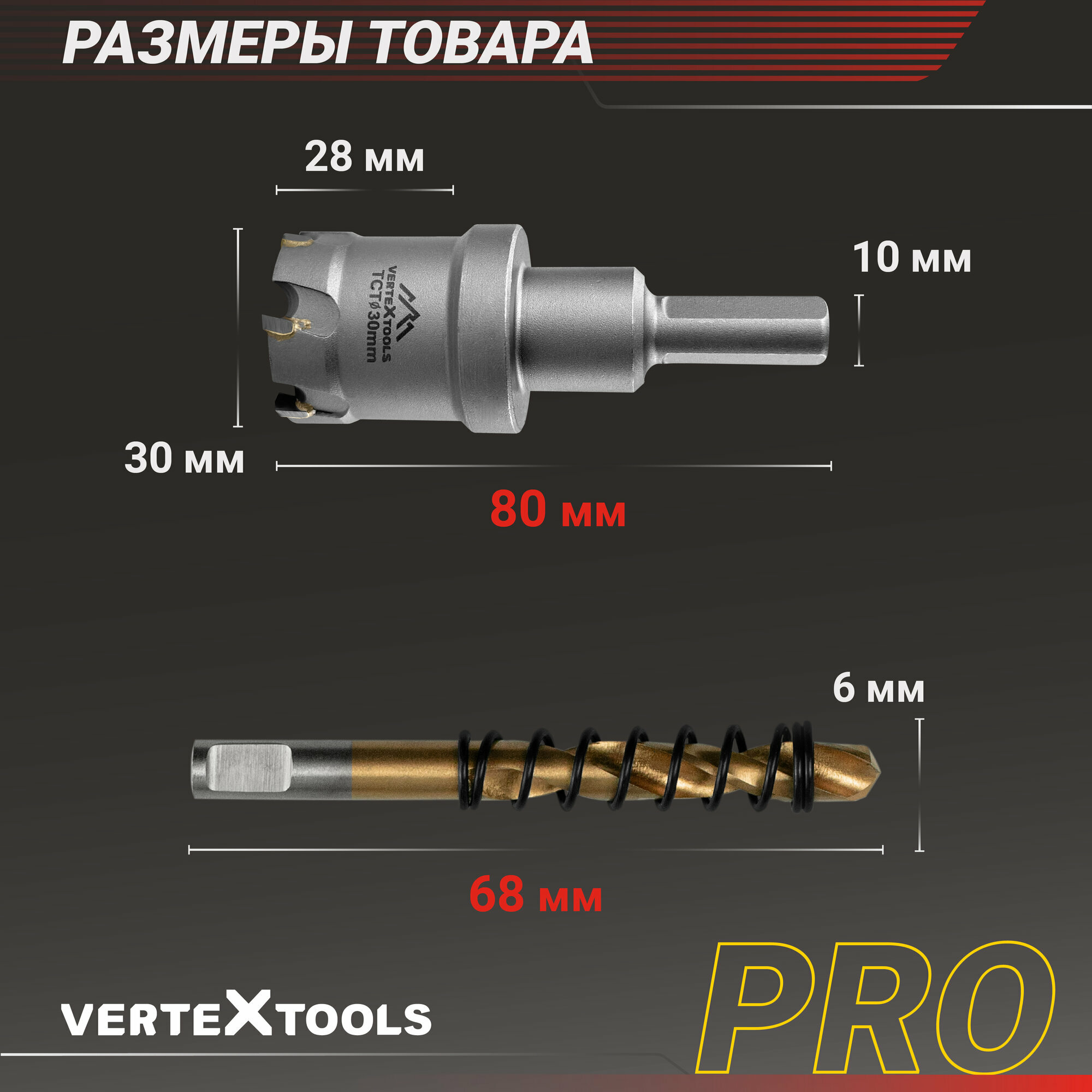 Коронка по металлу 30 мм. с центрирующим сверлом VertexTools информация: